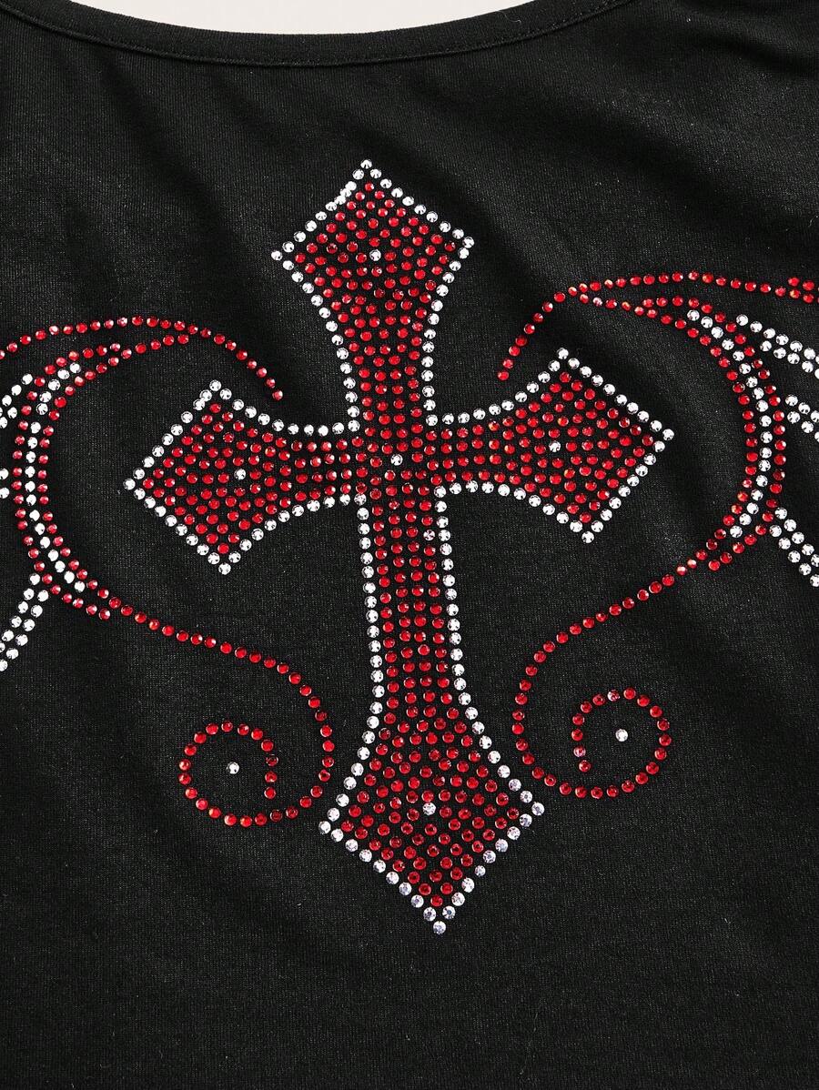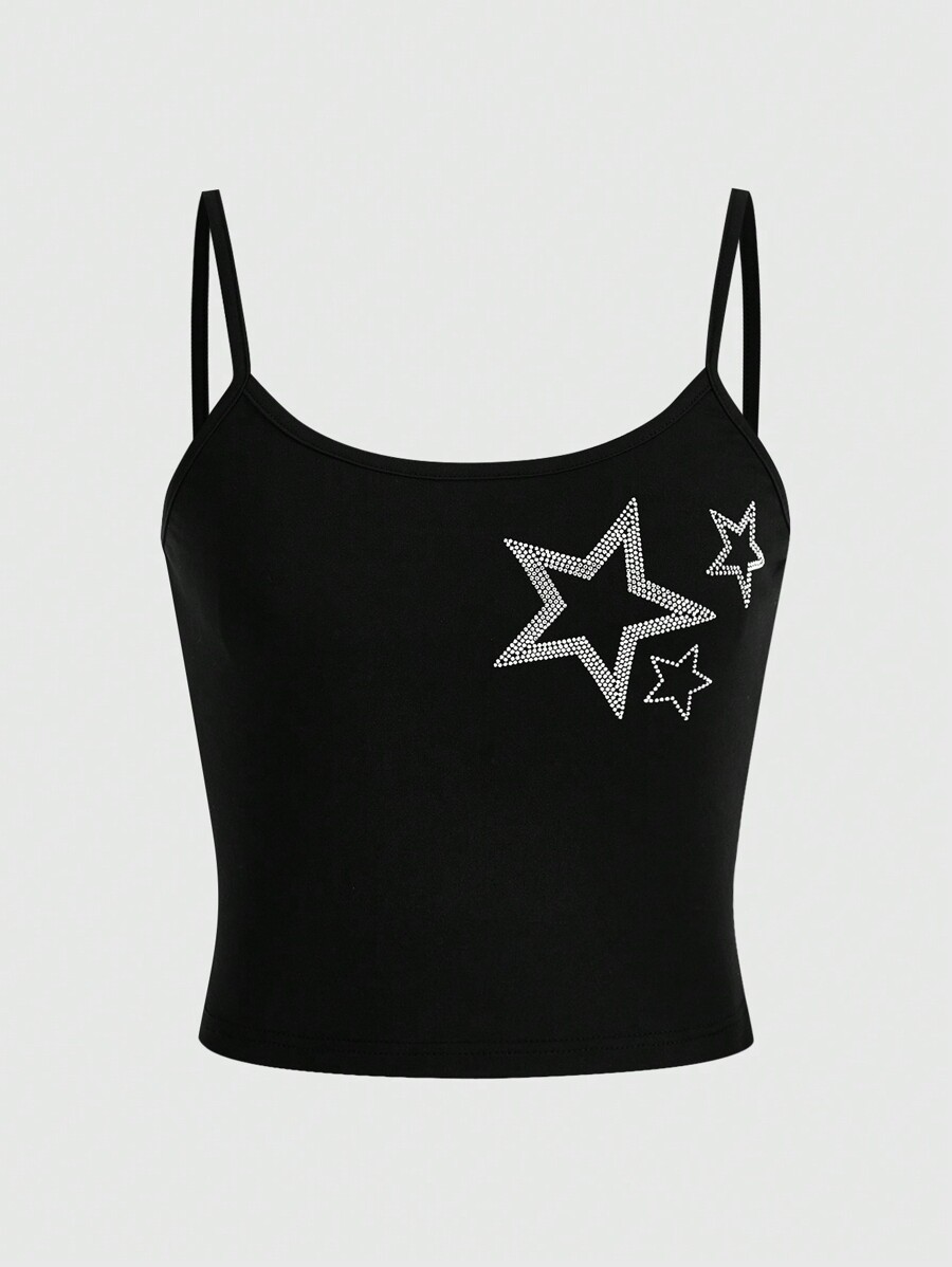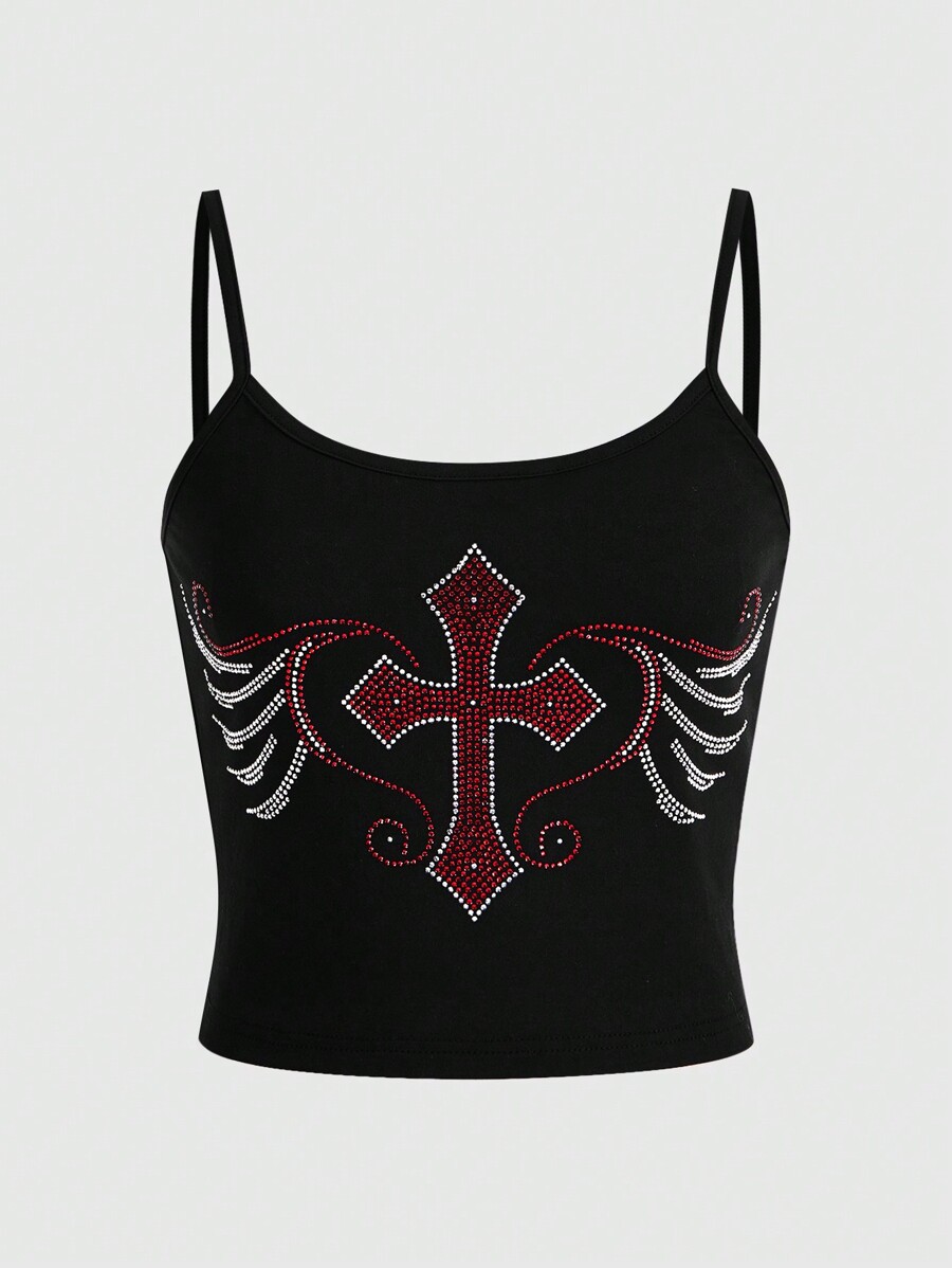 Grunge Punk 3pcs/Set Star, Cross, Heart Design Rhinestone Detail Cami Tops Set, School