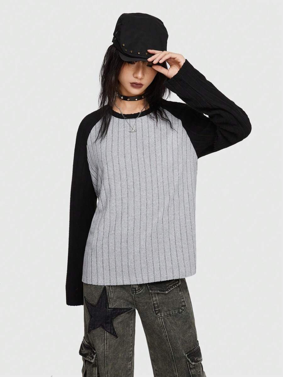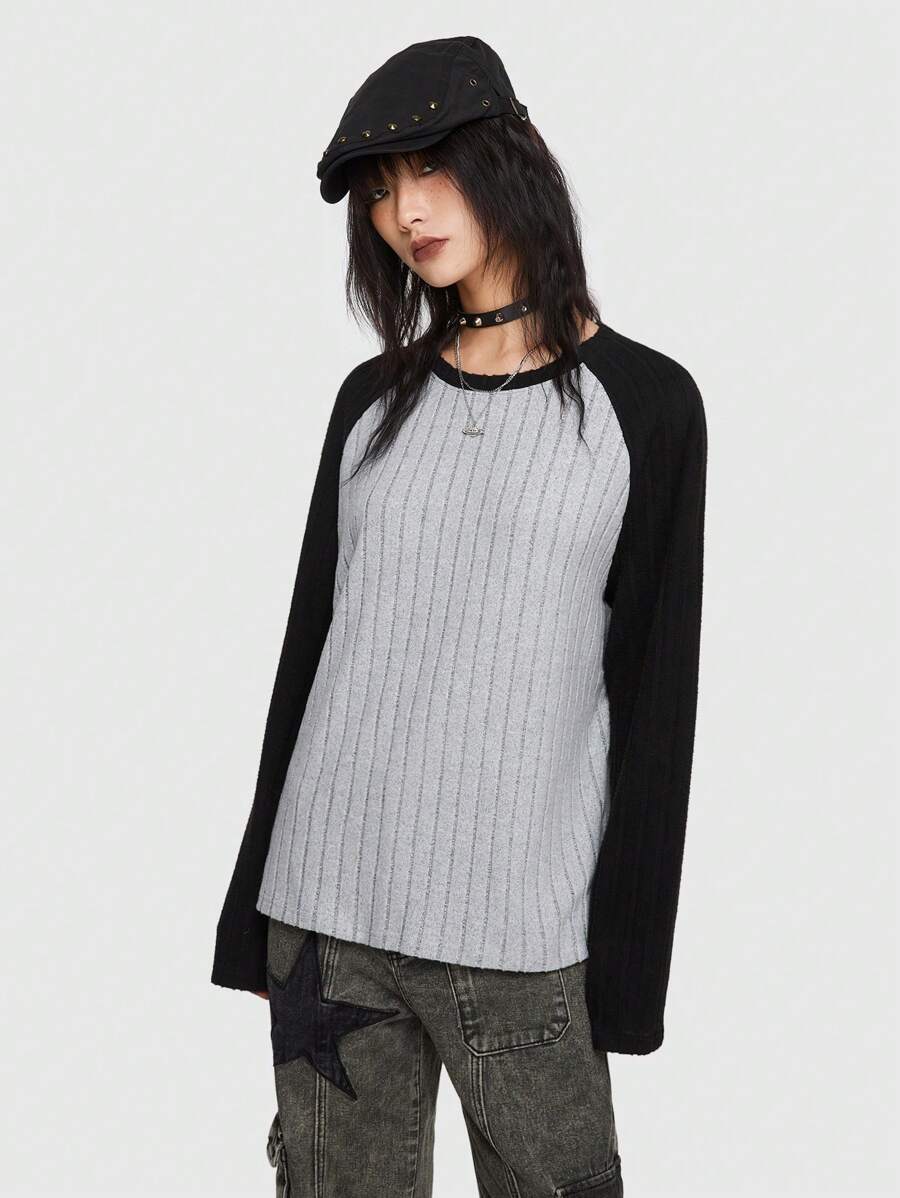 Grunge Punk Colorblock Raglan Sleeve Tee