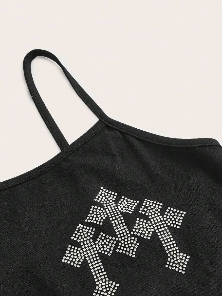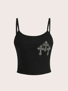 Grunge Punk Cross Rhinestone Decor Cami Top