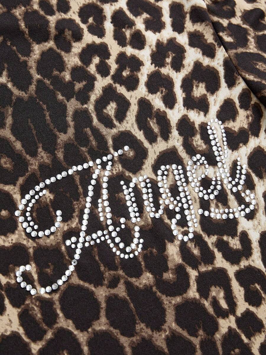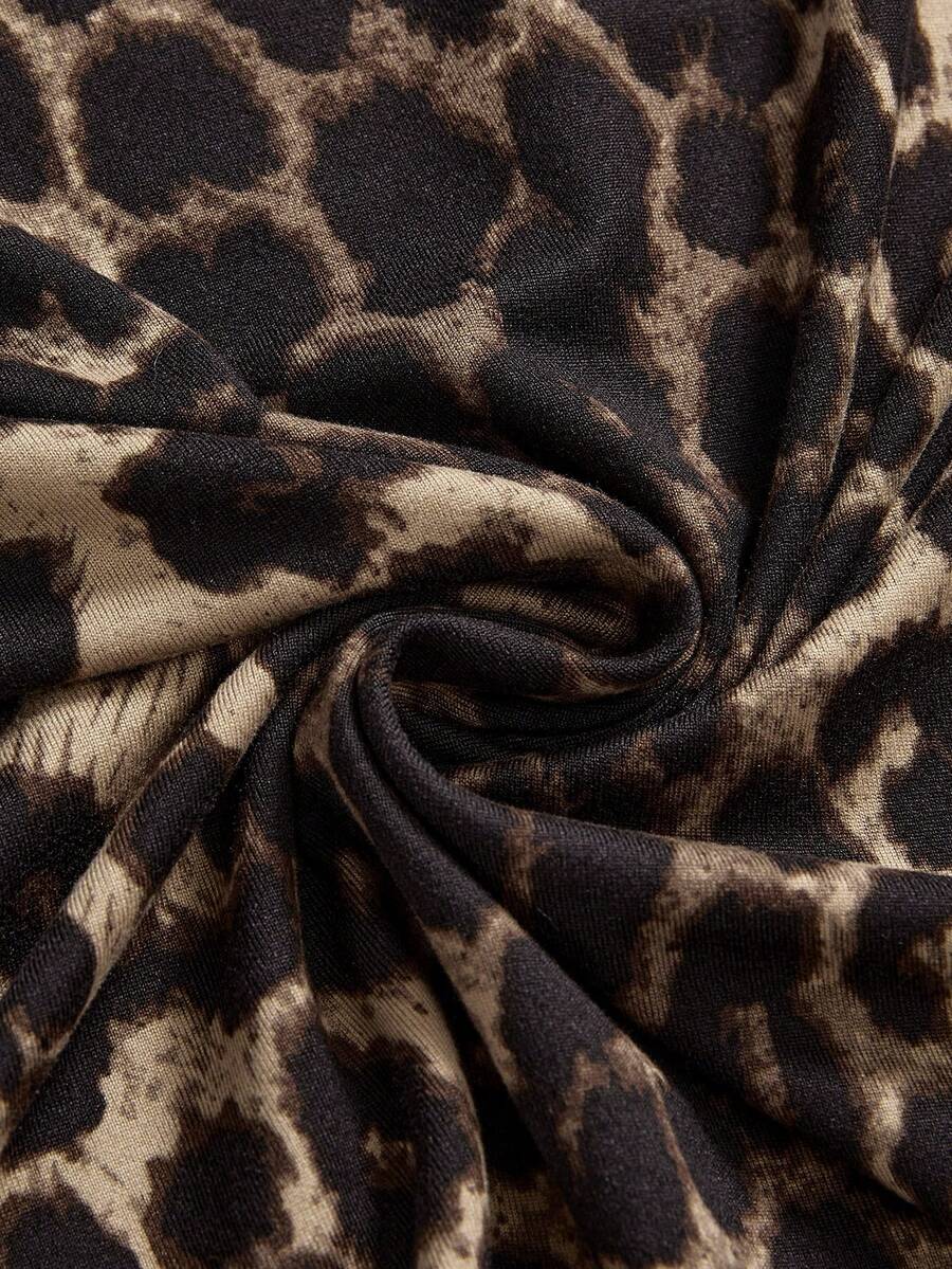 Grunge Punk Dark Punk Leopard Print Rhinestone Embellish Oblique Shoulder Loose 2 In 1 T-Shirt For Women