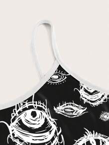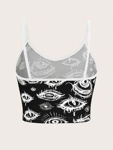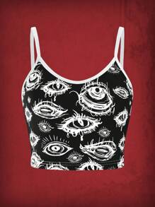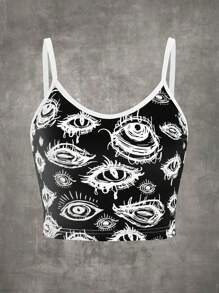 Grunge Punk Eye Print Contrast Binding Cami Top