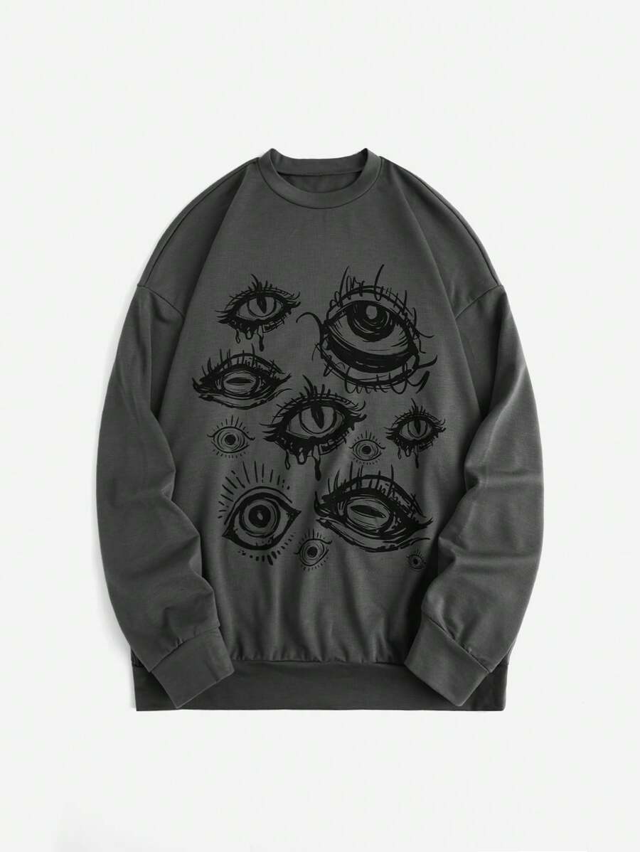 Grunge Punk Eye Print Drop Shoulder Sweatshirt