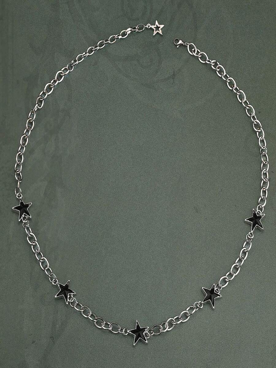 Grunge Punk Fashionable Creative Design Black Five-pointed Star Pendant Necklace