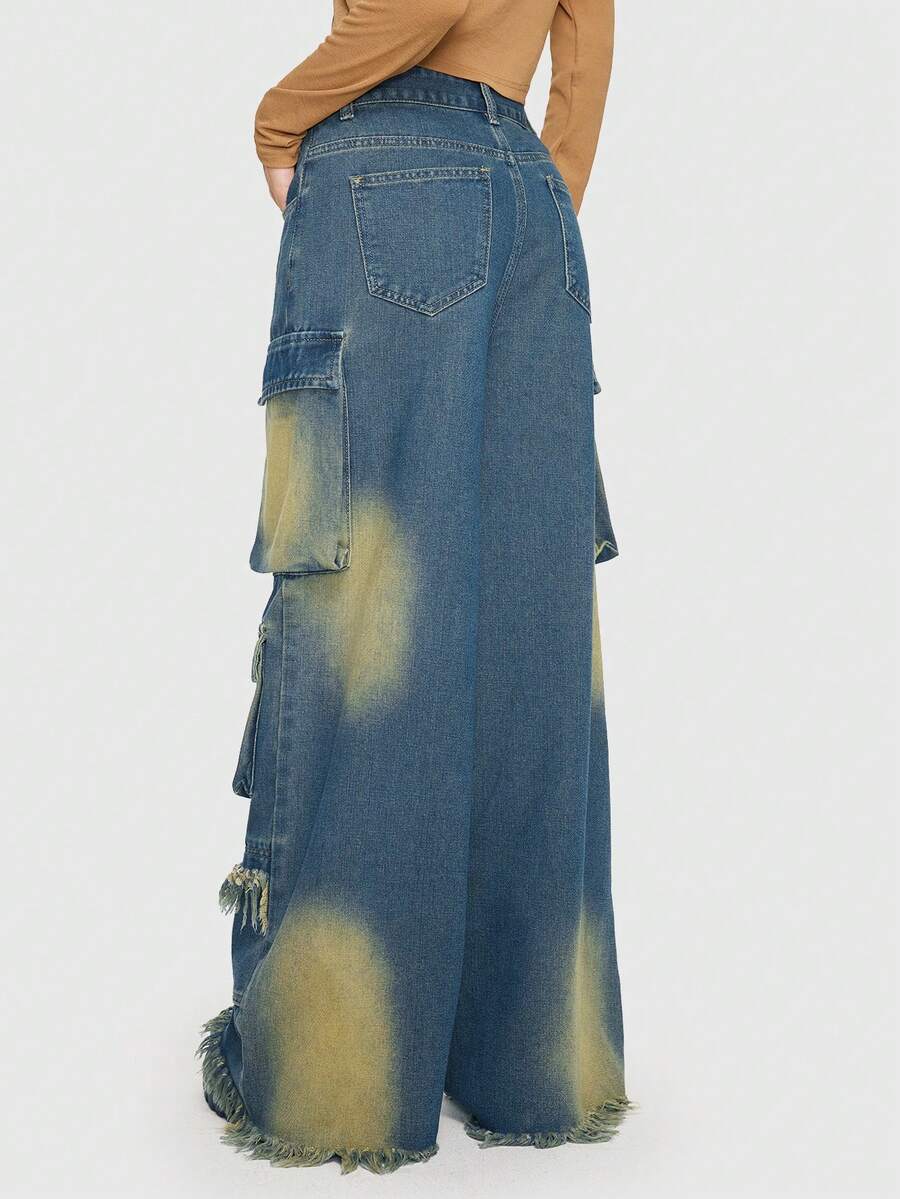 Grunge Punk Flap Pocket Raw Hem Cargo Jeans