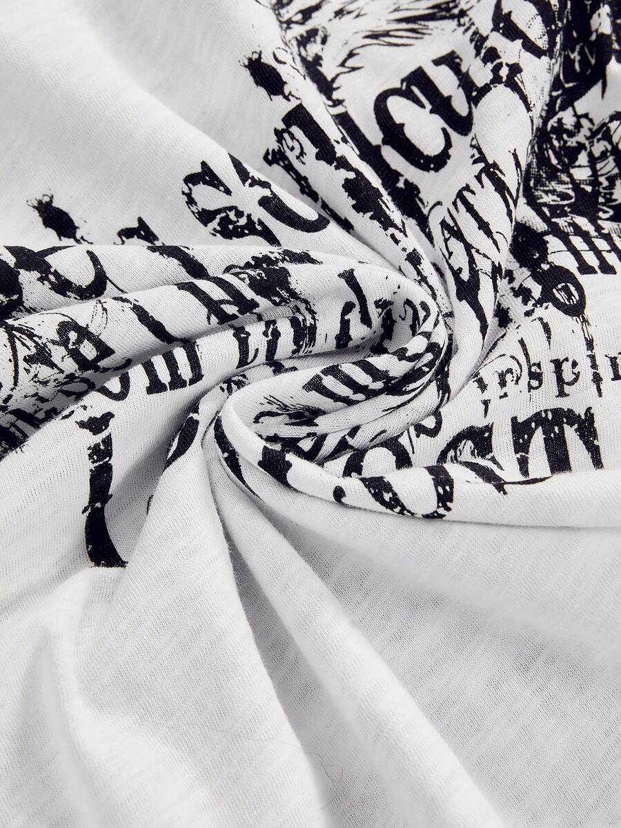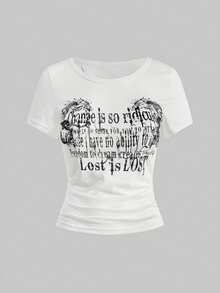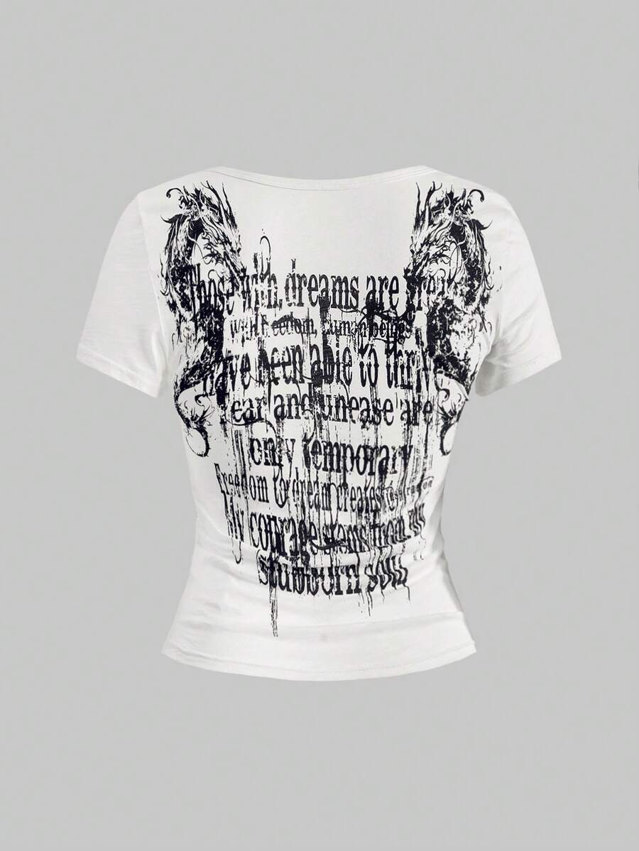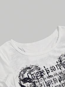Grunge Punk Grunge Aesthetics Tattoo Print T-Shirt Trashy 2000s Style Letter T Shirt Japanese Y2k White Sheer Tops Gothic Vintage