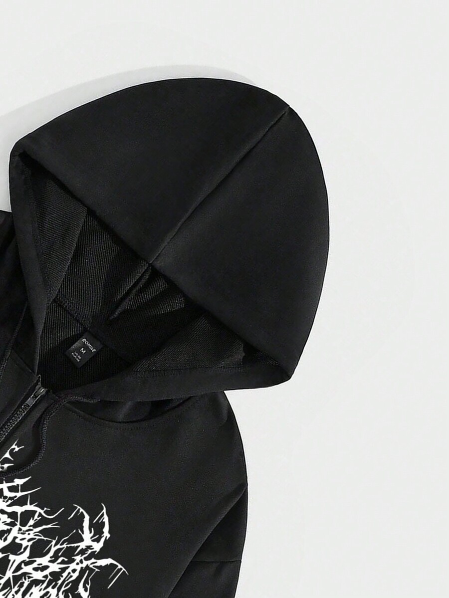Grunge Punk Men Printed Kangaroo Pocket Hoodie Sweatshirt With Zipper
