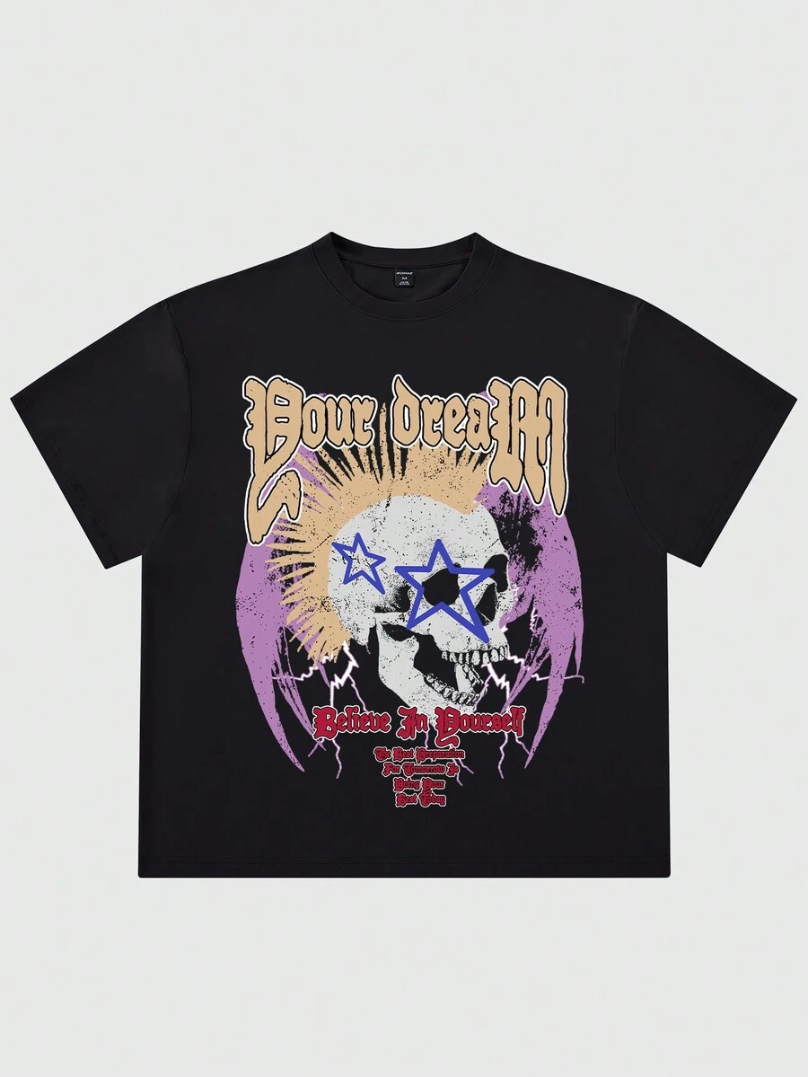 Grunge Punk Guys Skull & Letter Graphic Tee