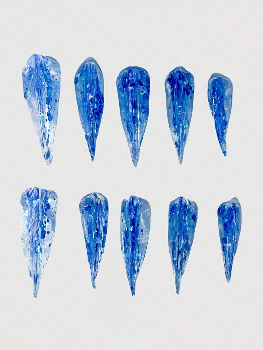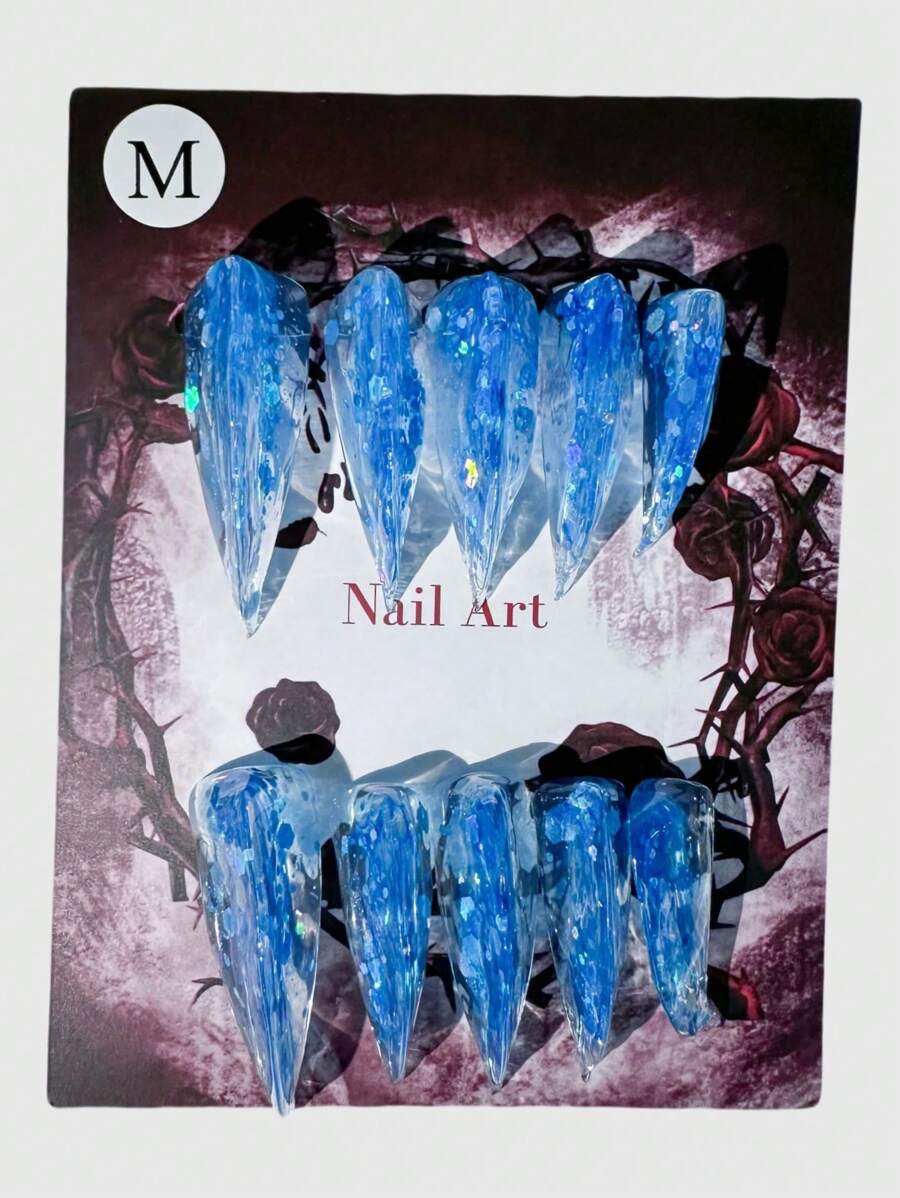 Grunge Punk Handmade Punk Gothic Blue Sea Sequin Animal Claw Dragon Claw Nail Press-On Nails , Unique Anime/Cosplay Theme Nail Jewelry Suitable For Conventions, Music Festivals, Professional Photoshoots