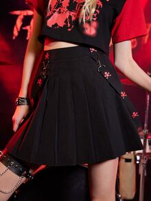 Grunge Punk Kpop Skull Print Pleated Skirt