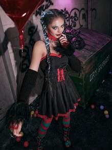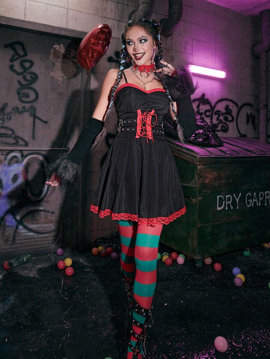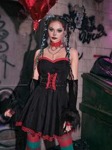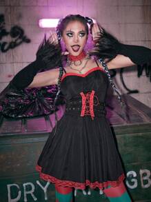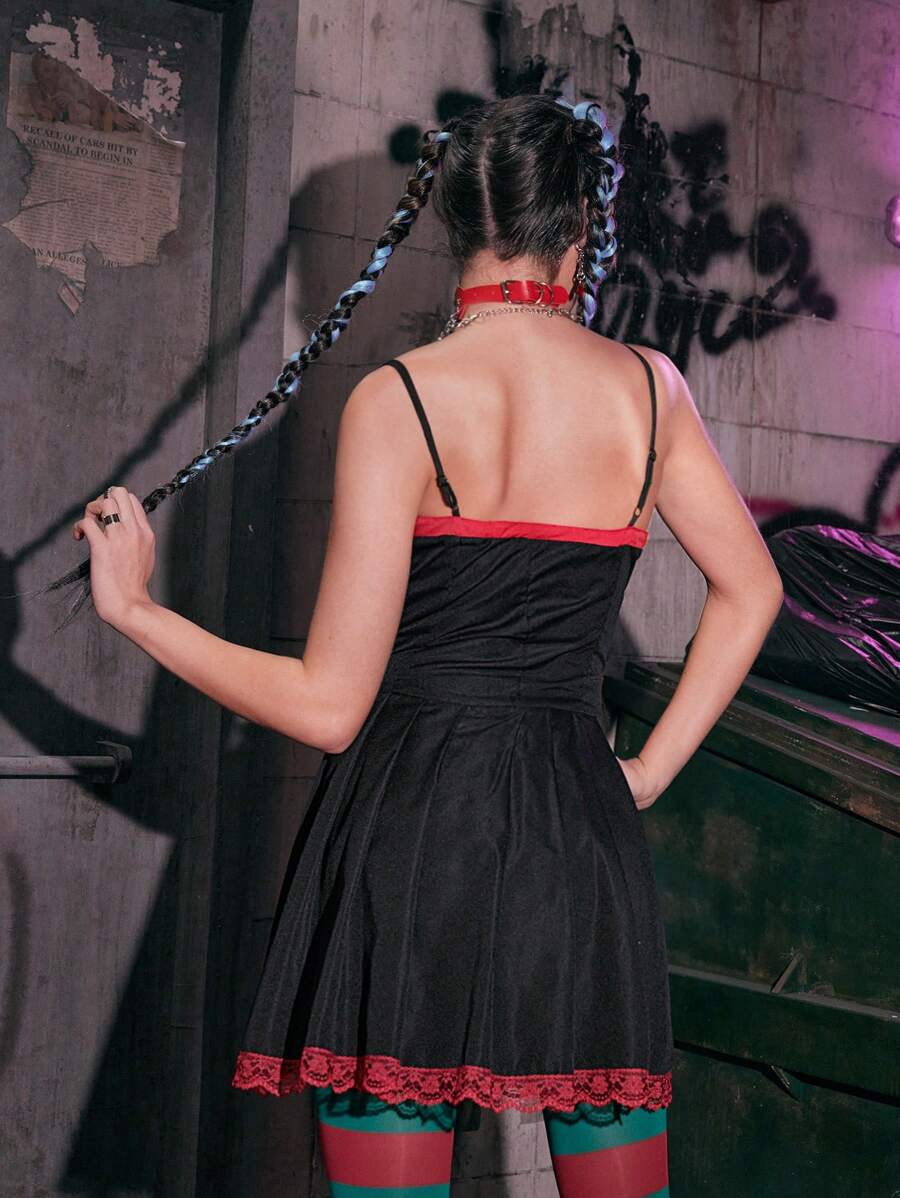 Grunge Punk Lace Up Contrast Lace Grommet Eyelet Cami Dress