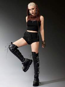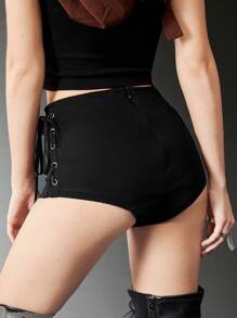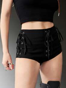 Grunge Punk Lace Up Front Grommet Eyelet Shorts