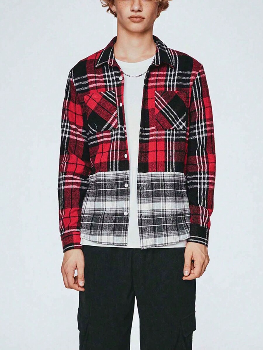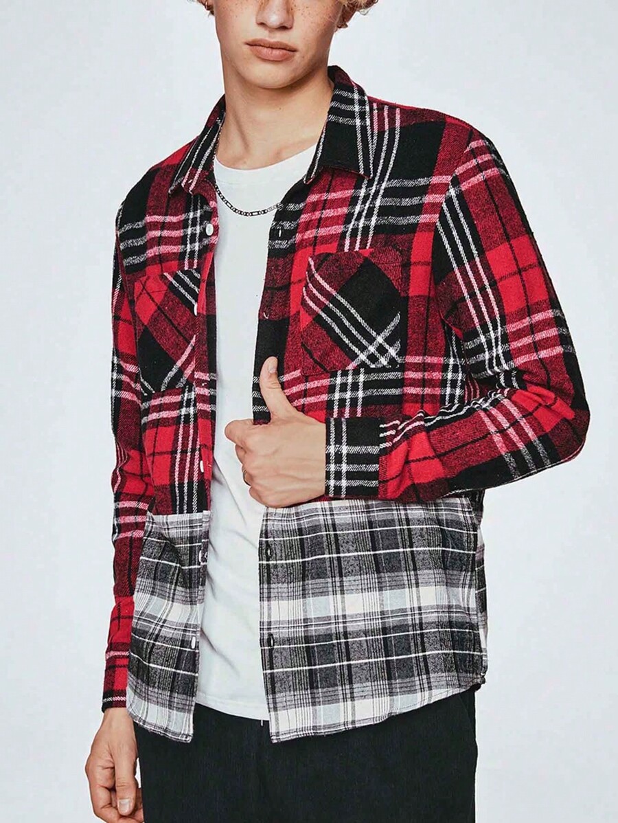 Grunge Punk Men's Checked Long Sleeve Shirt