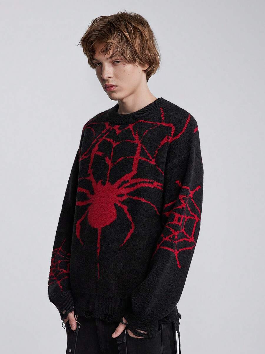 Grunge Punk Men's Crew Neck Long Sleeve Graphic Detail Casual Knit Sweater