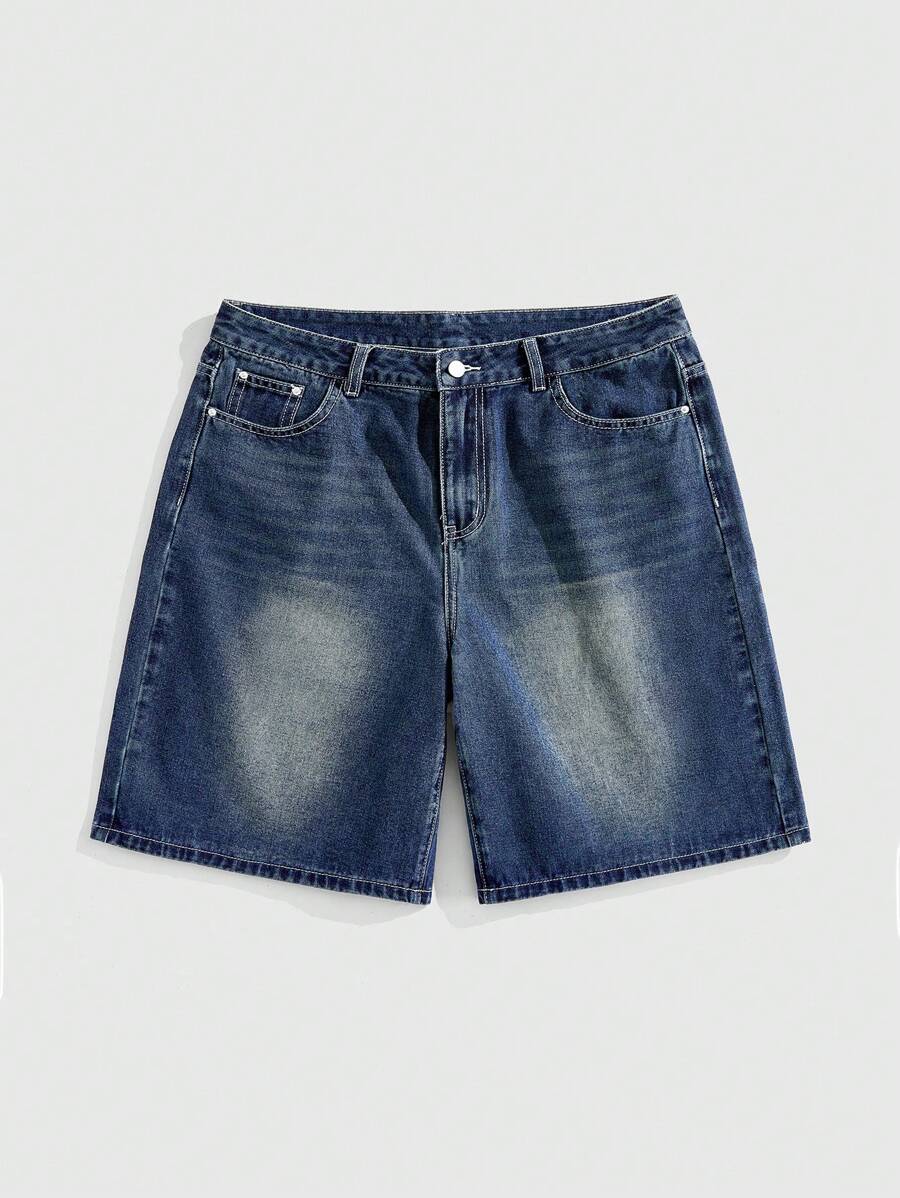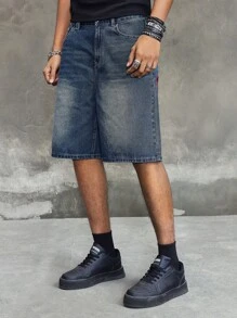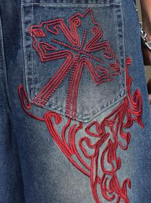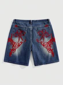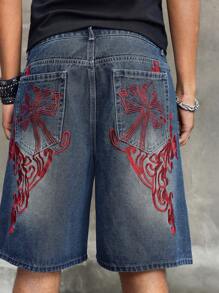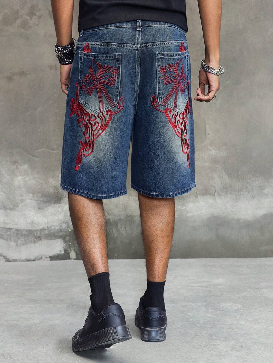 Grunge Punk Men's Cross Embroidered Pockets Casual Versatile Denim Shorts