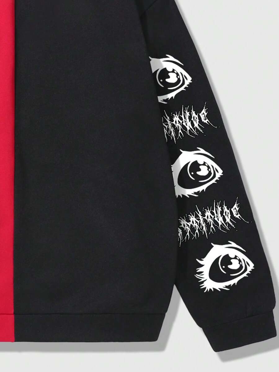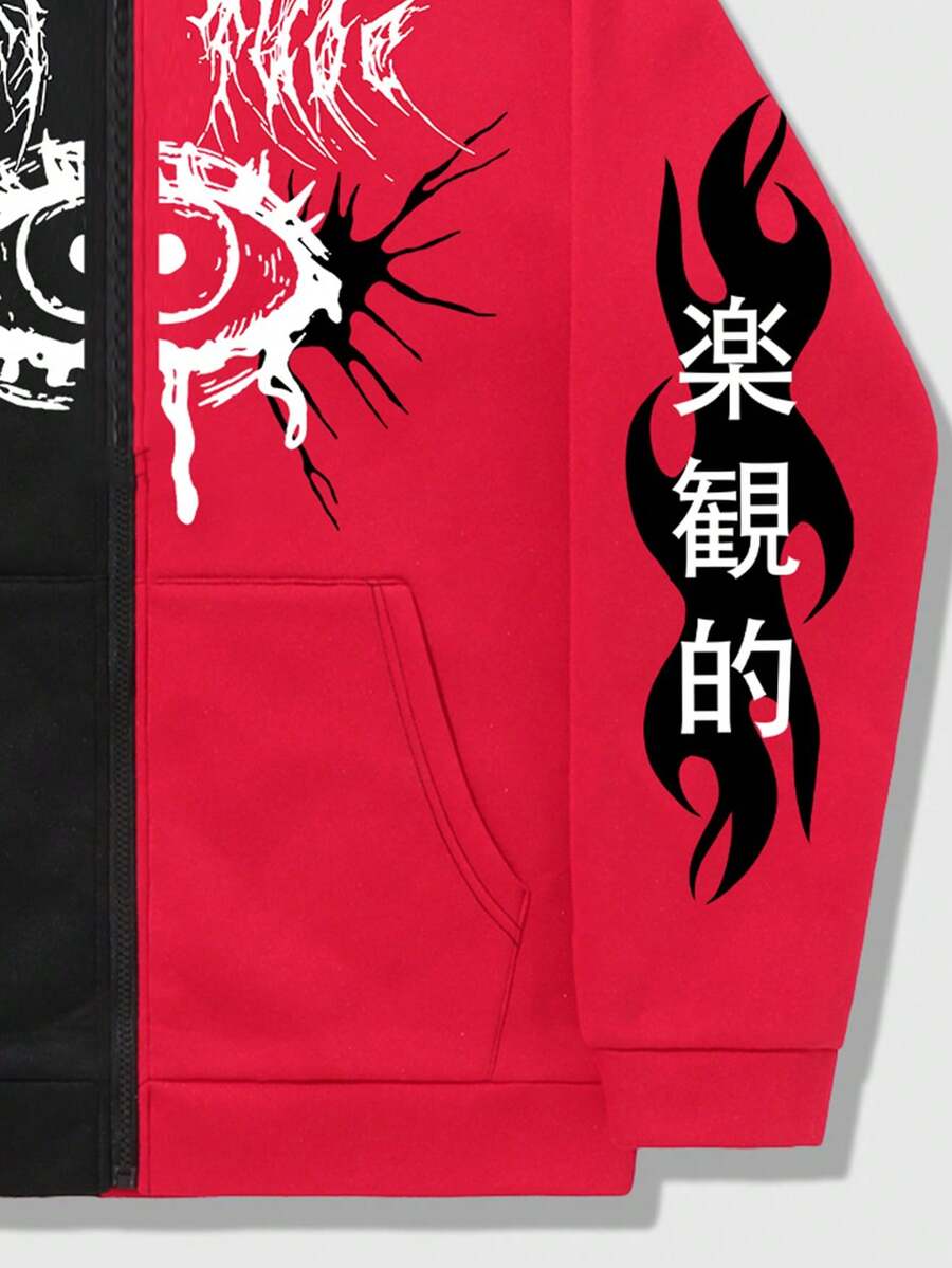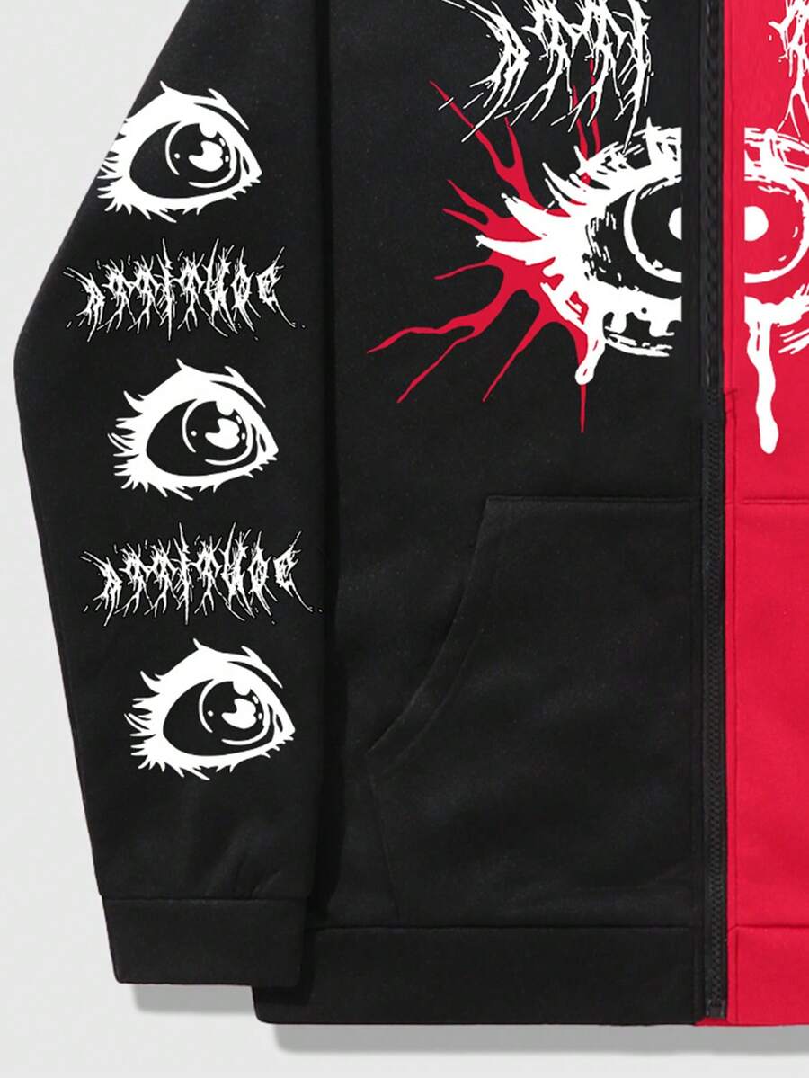 Grunge Punk Men's Zippered Hoodie With Eye Pattern