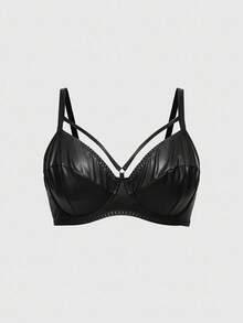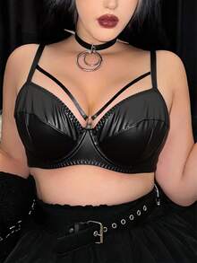 Grunge Punk Plus Size Dark Punk PU Fabric Underwire Bra