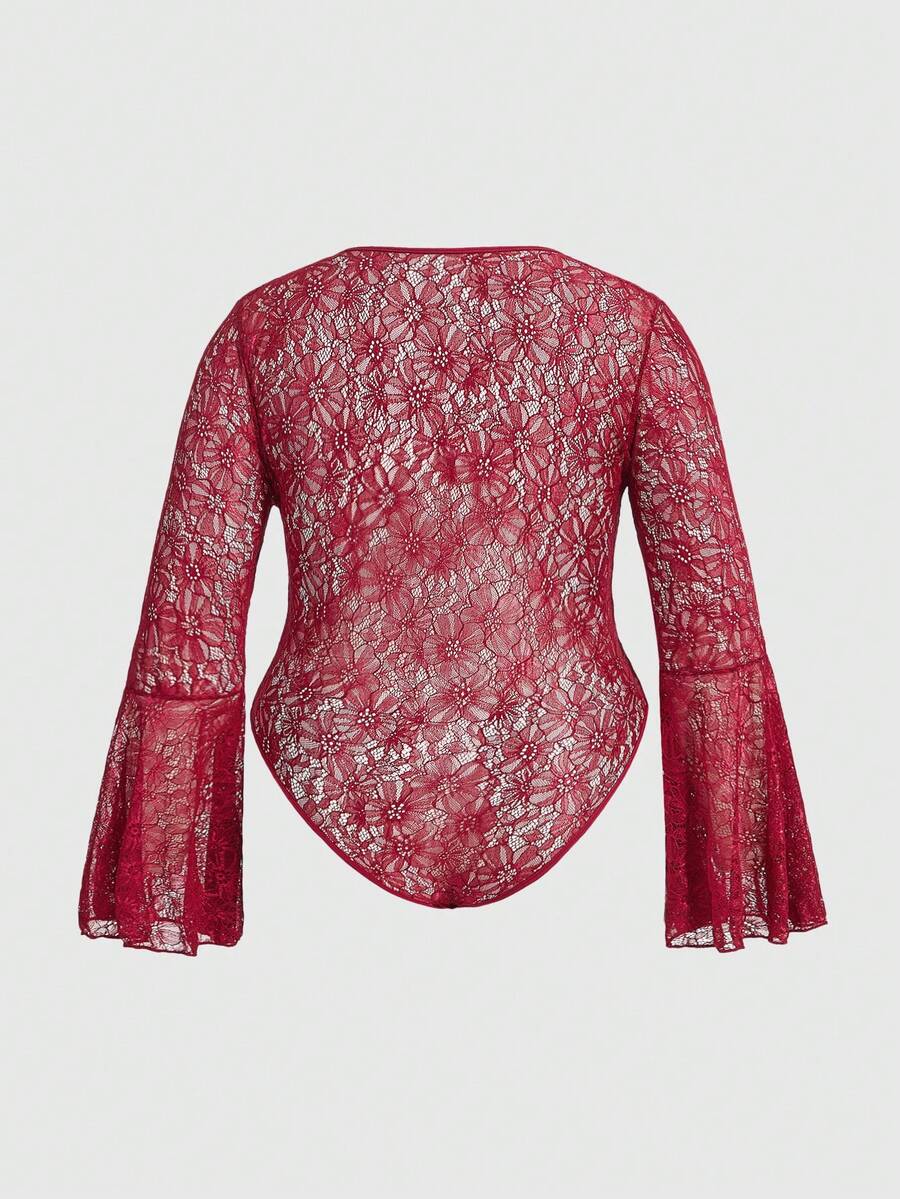 Grunge Punk Plus Size Women's Lace Floral Sexy Flare Sleeve Bodysuit Lingerie