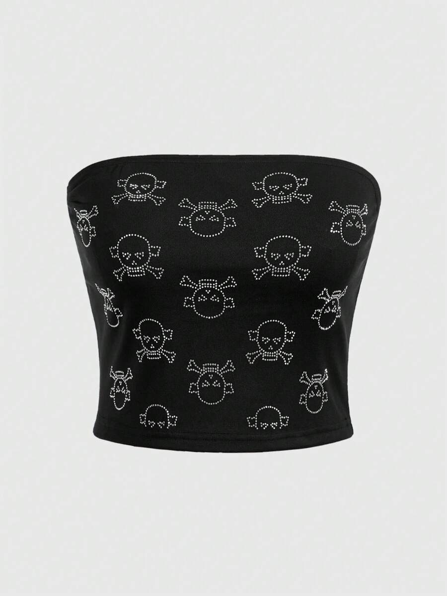Grunge Punk Plus Size Women's Skull Bead-embellished Tube Top