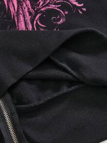 Grunge Punk Plus Size Y2K Millennium Retro Punk Skull Print Zip-Up Hoodie