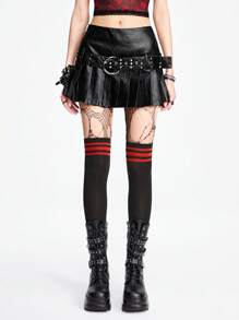 Grunge Punk Punk Style Leather Skirt With Studded Metal Belt And Pleated Design For Women