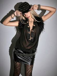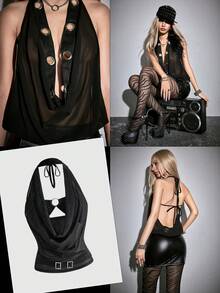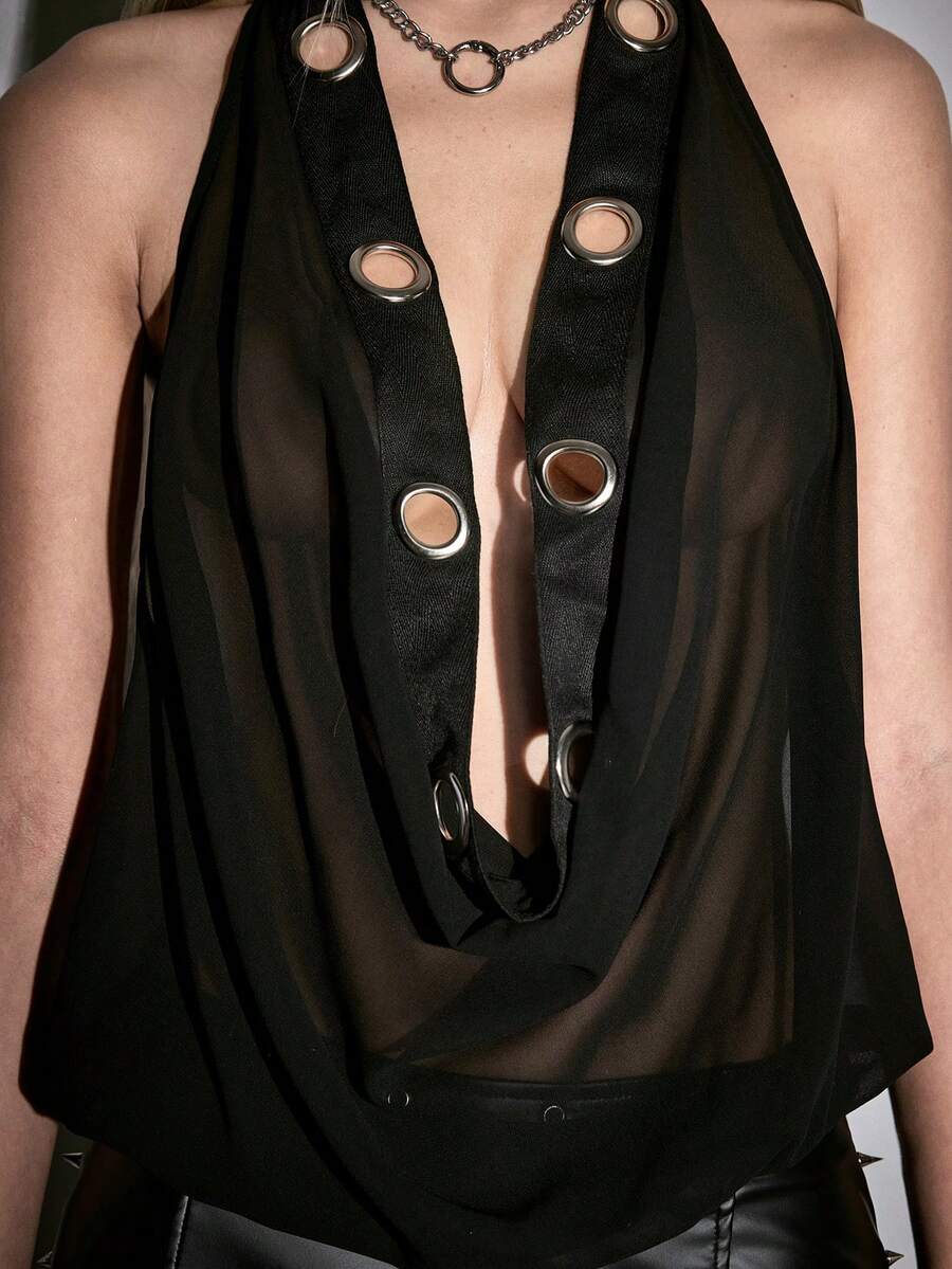 Grunge Punk Sexy Deep Draped Neck Backless Halter Women Tank Top