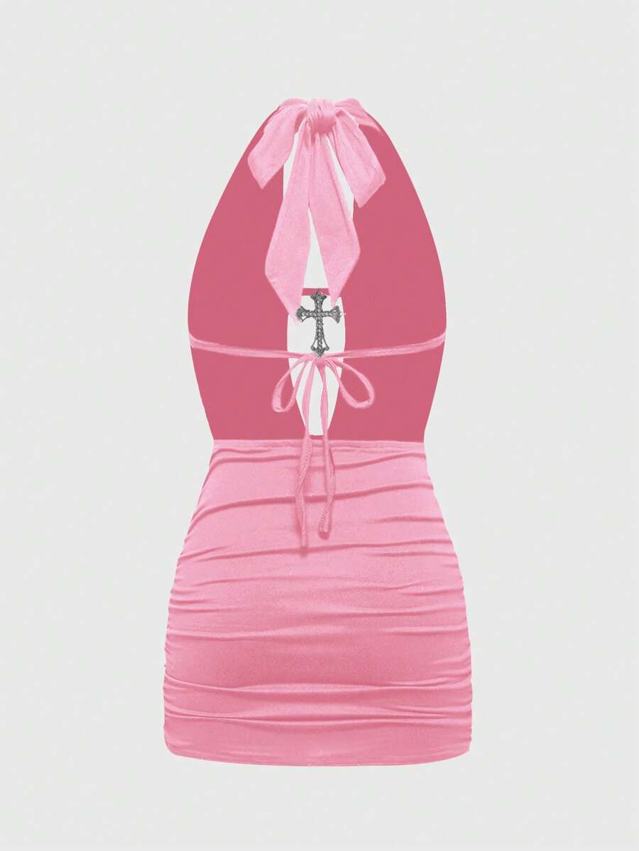 Grunge Punk Sexy Millennium Pendant Cross Draped Neck Tie Up Women Mini Dress