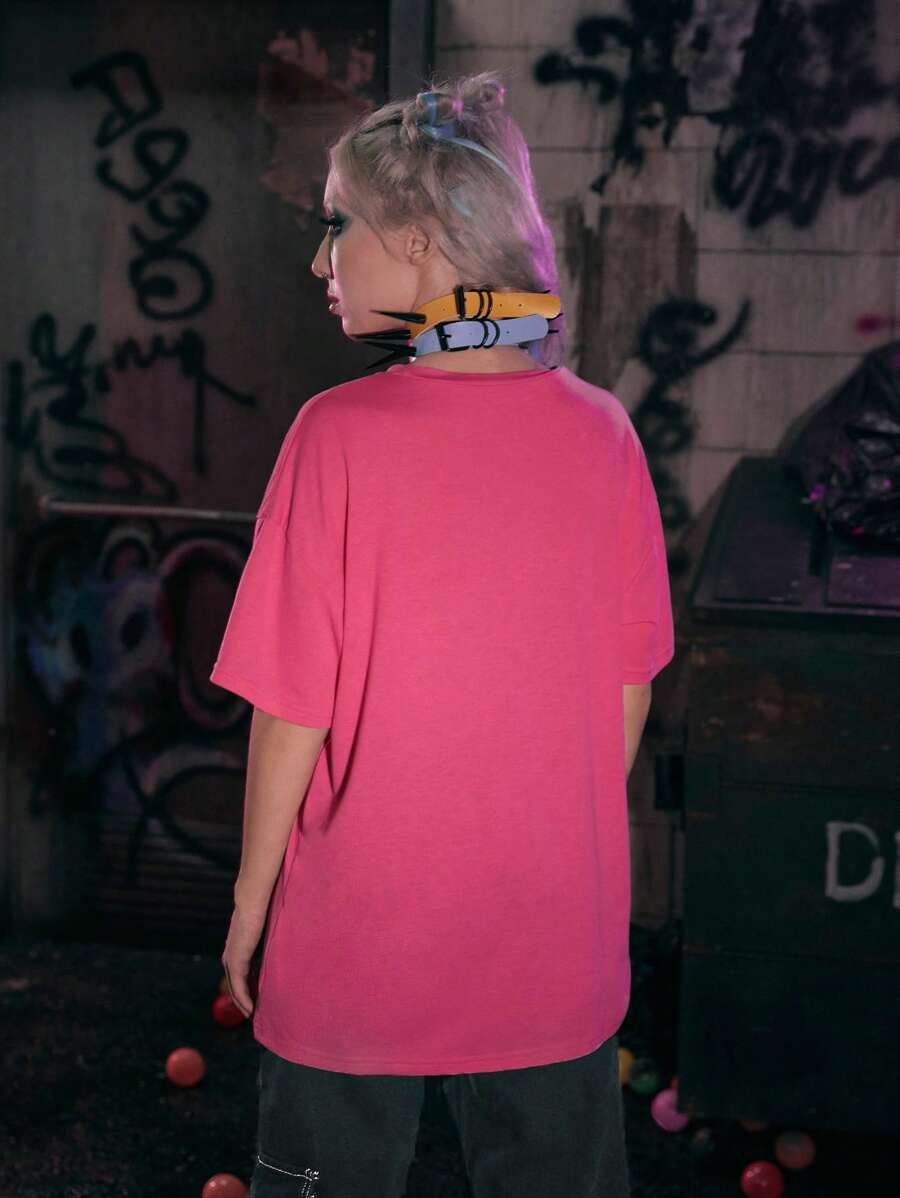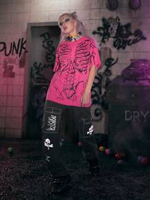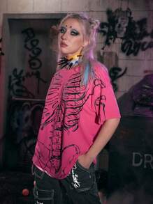 Grunge Punk Skeleton Print Drop Shoulder Tee Punk