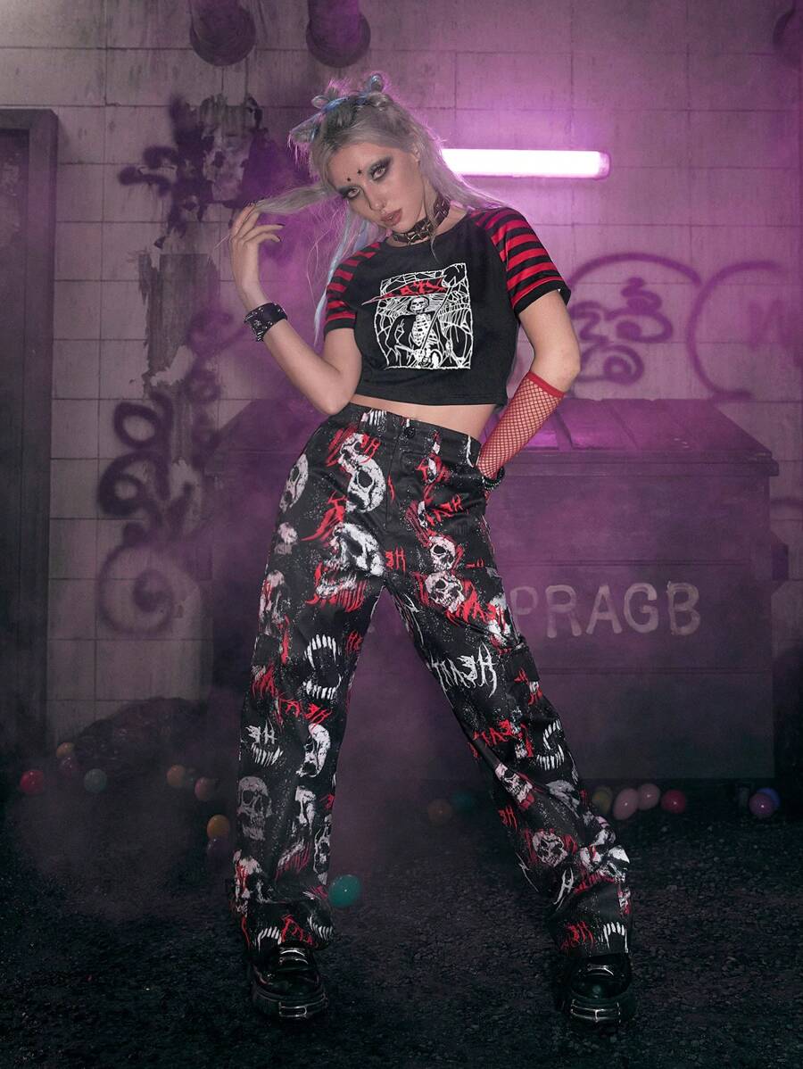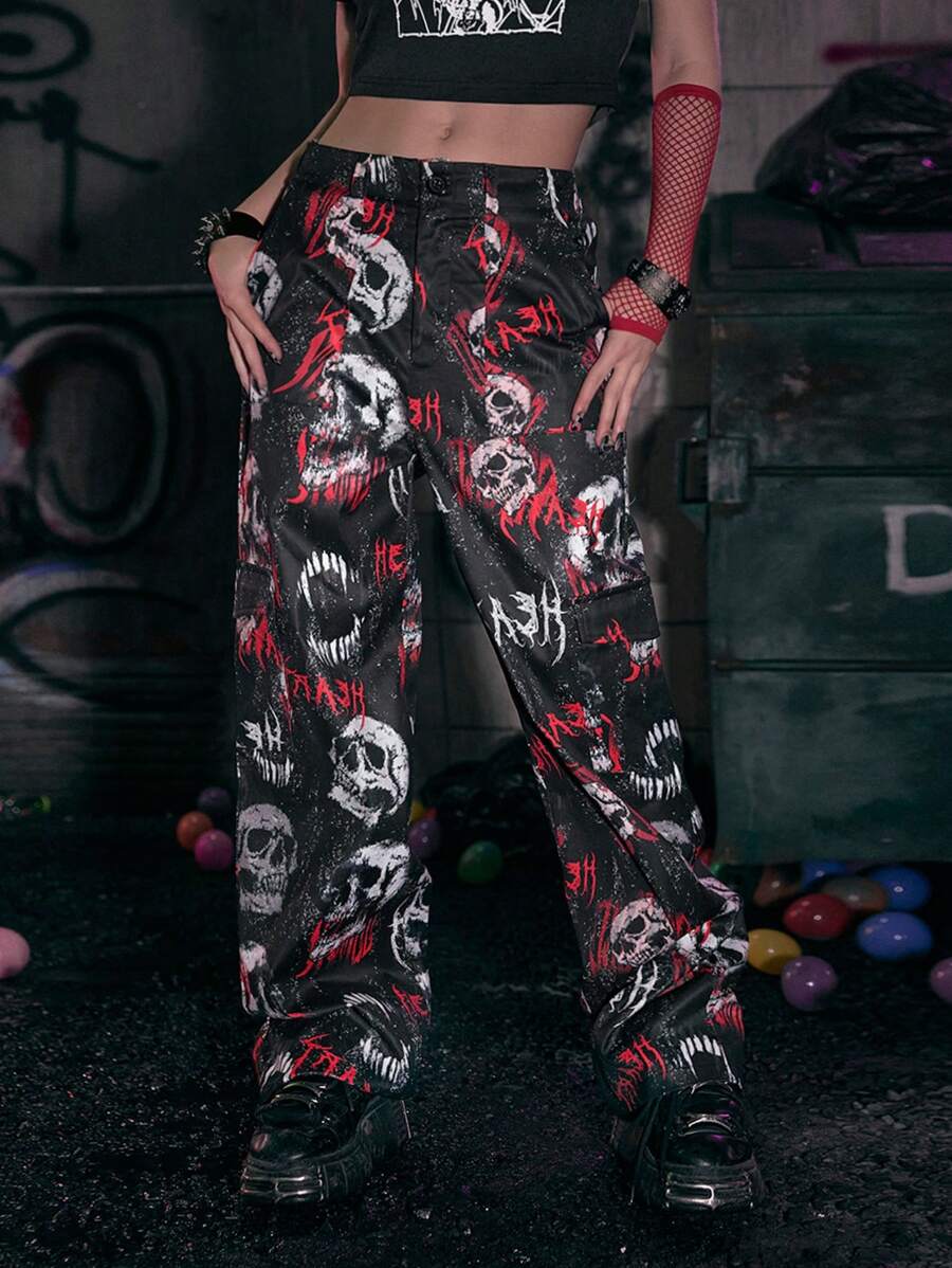 Grunge Punk Skull & Letter Graphic Cargo Trousers