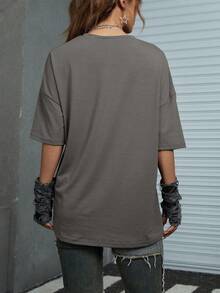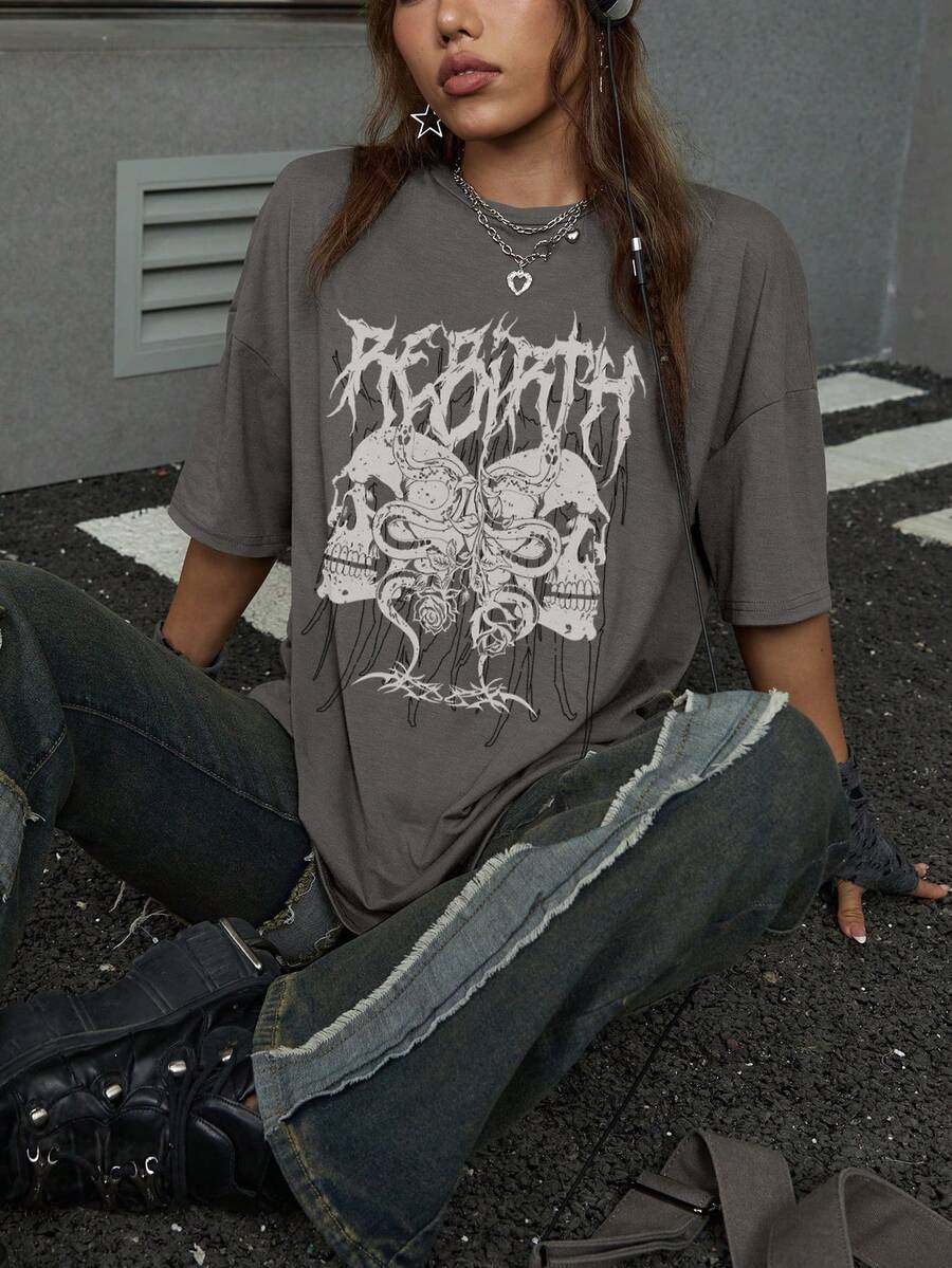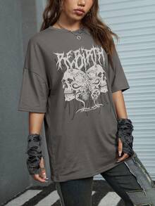 Grunge Punk Skull & Letter Print Short Sleeve T-shirt