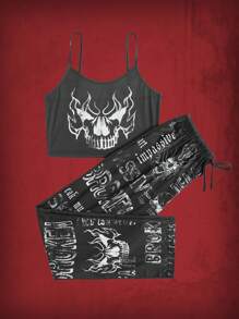Grunge Punk Skull Print PJ Set