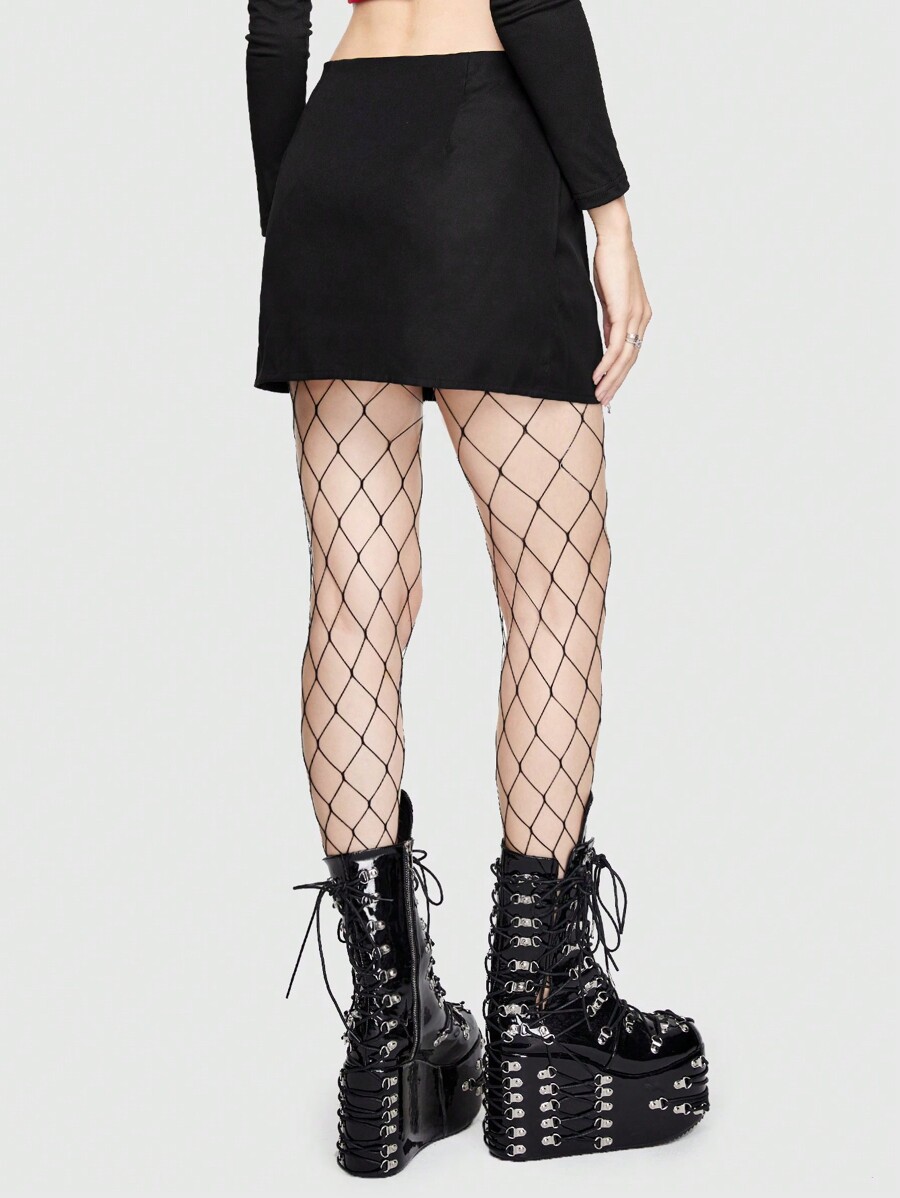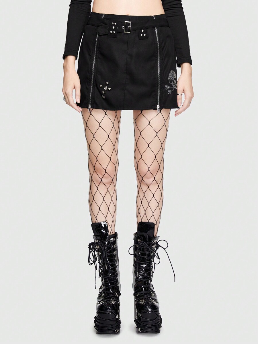 Grunge Punk Skull Rhinestone Zip Up Skirt
