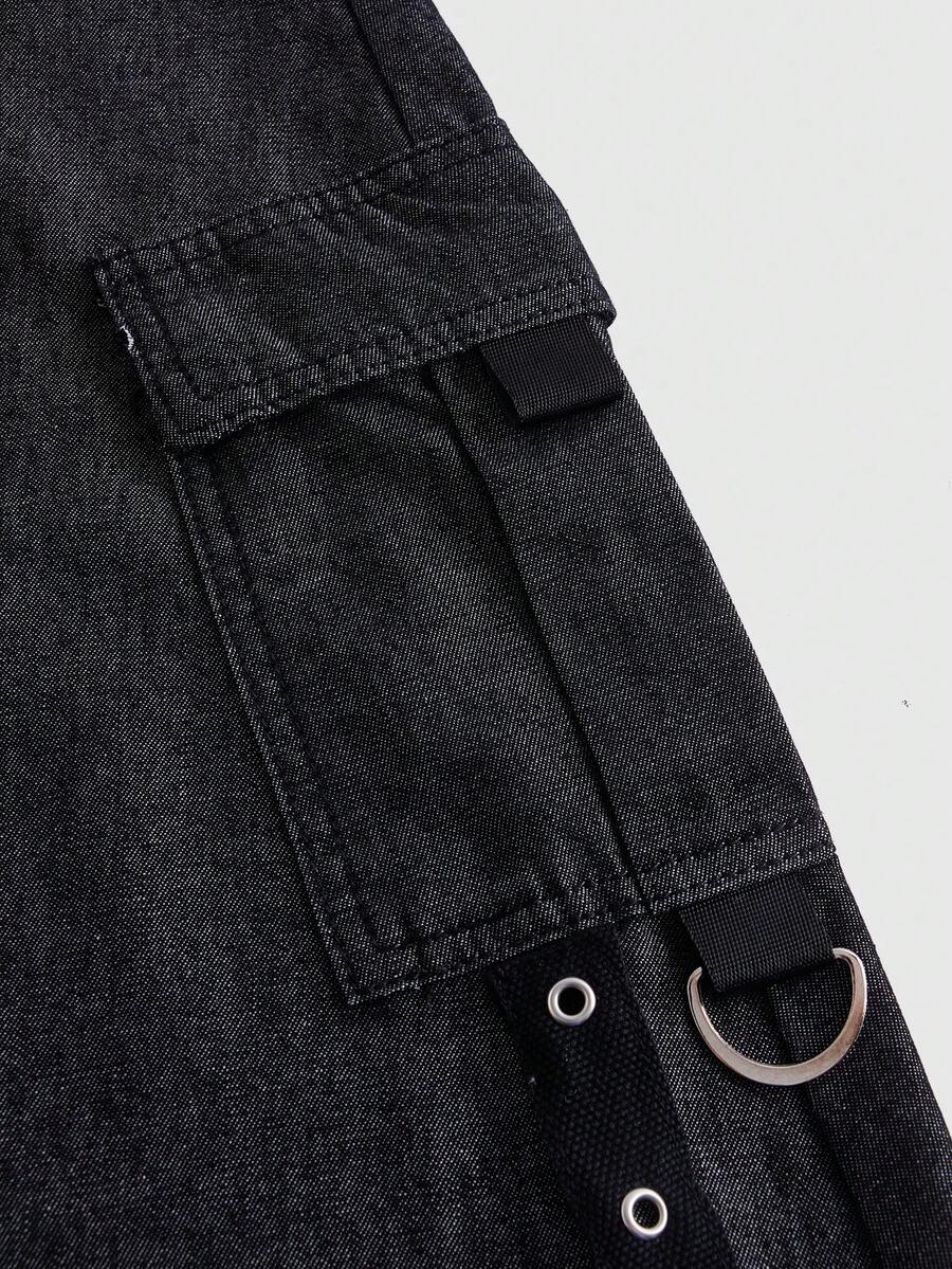 Grunge Punk Solid A-line Denim Skirt With Grommet Eyelet Decor Strap