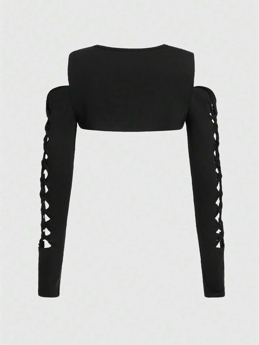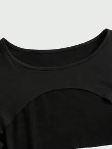 Grunge Punk Solid Cut Out Super Crop Top Without Bra