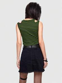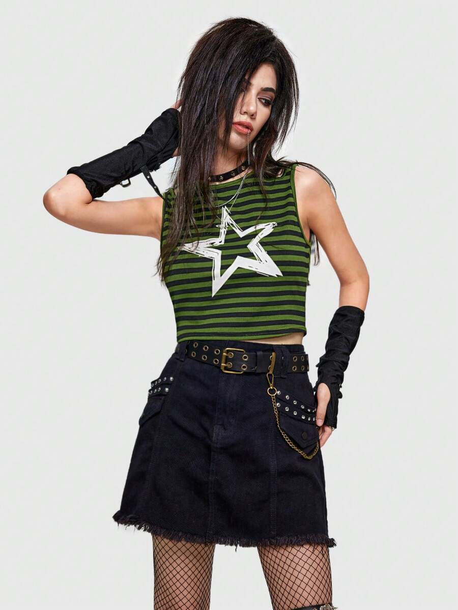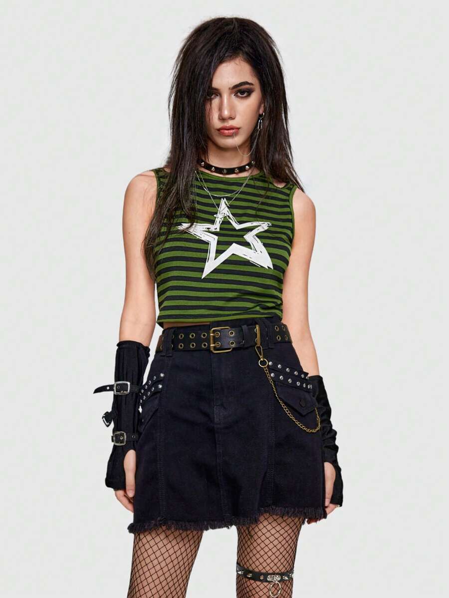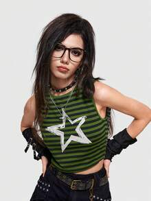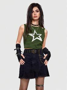 Grunge Punk Star Print Cut Out Crop Tank Top