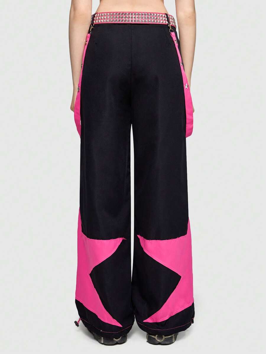 Grunge Punk Star Print Wide Leg Trousers