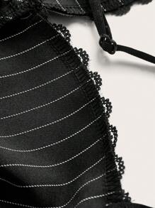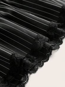 Grunge Punk Striped Print Contrast Lace Ruffle Hem Cami Dress