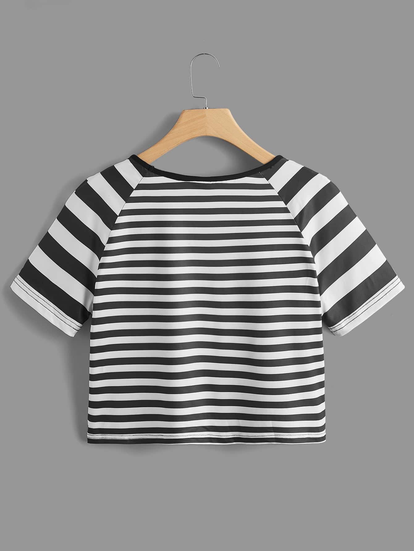 Grunge Punk Striped & Star Print Raglan Sleeve Tee