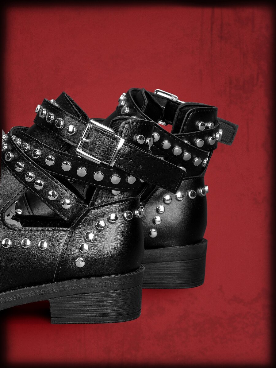 Grunge Punk Studded & Buckle Decor Chunky Heeled Sandal Boots