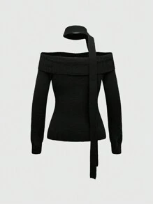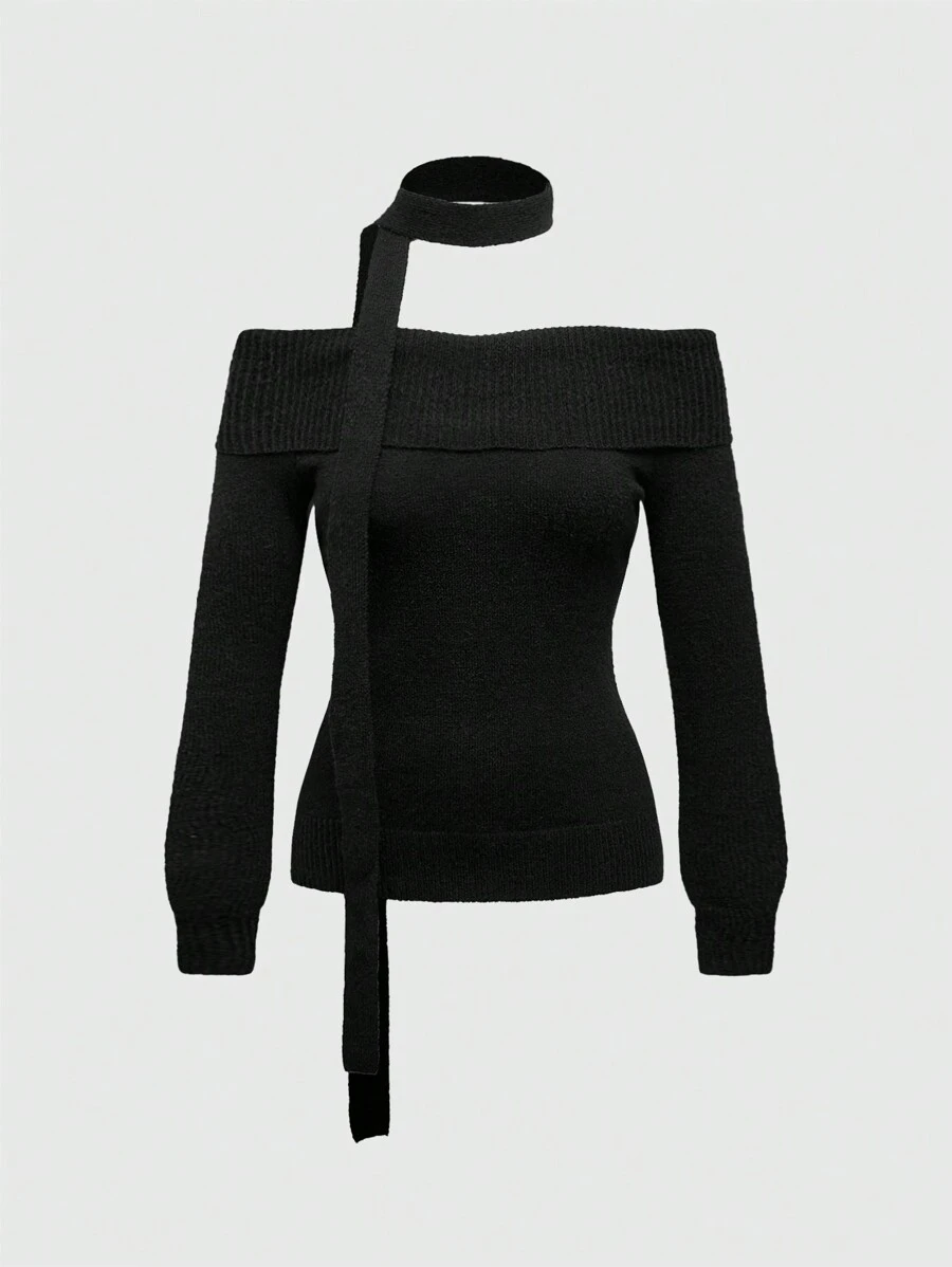 Grunge Punk Vintage Millennium Off Shoulder Knit Sweater For Women