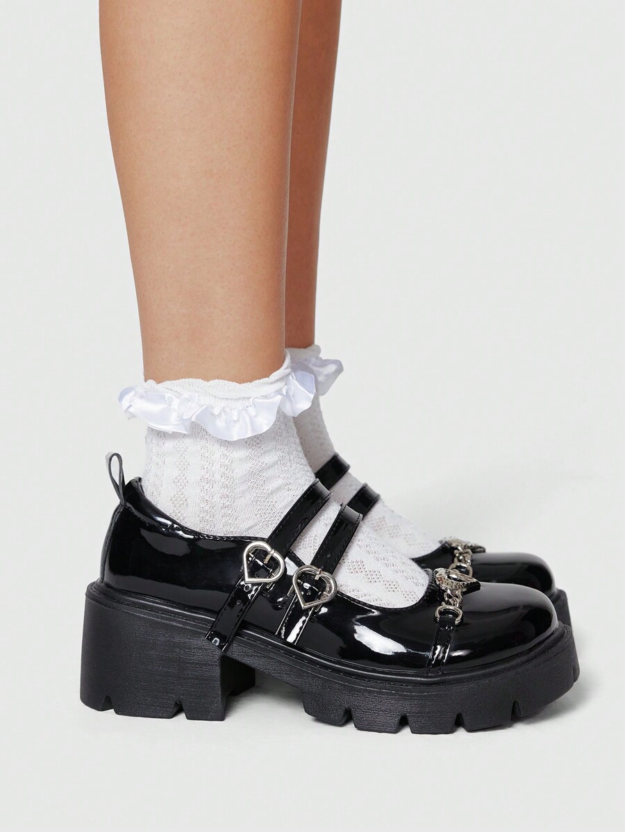 Grunge Punk Women Punk Rock Mary Jane Shoes, Closed Toe Cross Strap Buckle Gothic Platform Wedge Pumps Spring Shoes Spring Break Easter