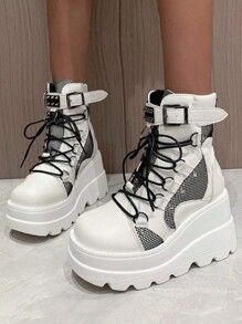 Grunge Punk Women's New Round Toe White Punk Style Wedge Heel Platform Boots For Spring And Autumn