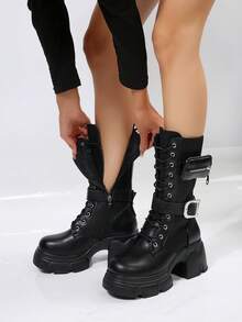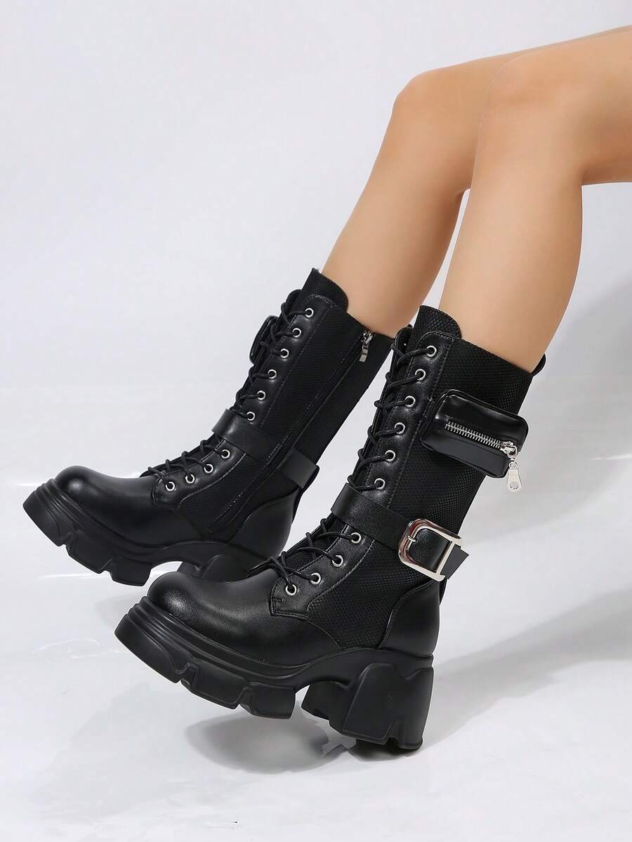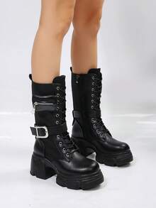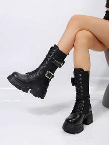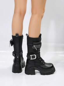 Grunge Punk Women's British Style Chunky Heel Mid-calf Boots