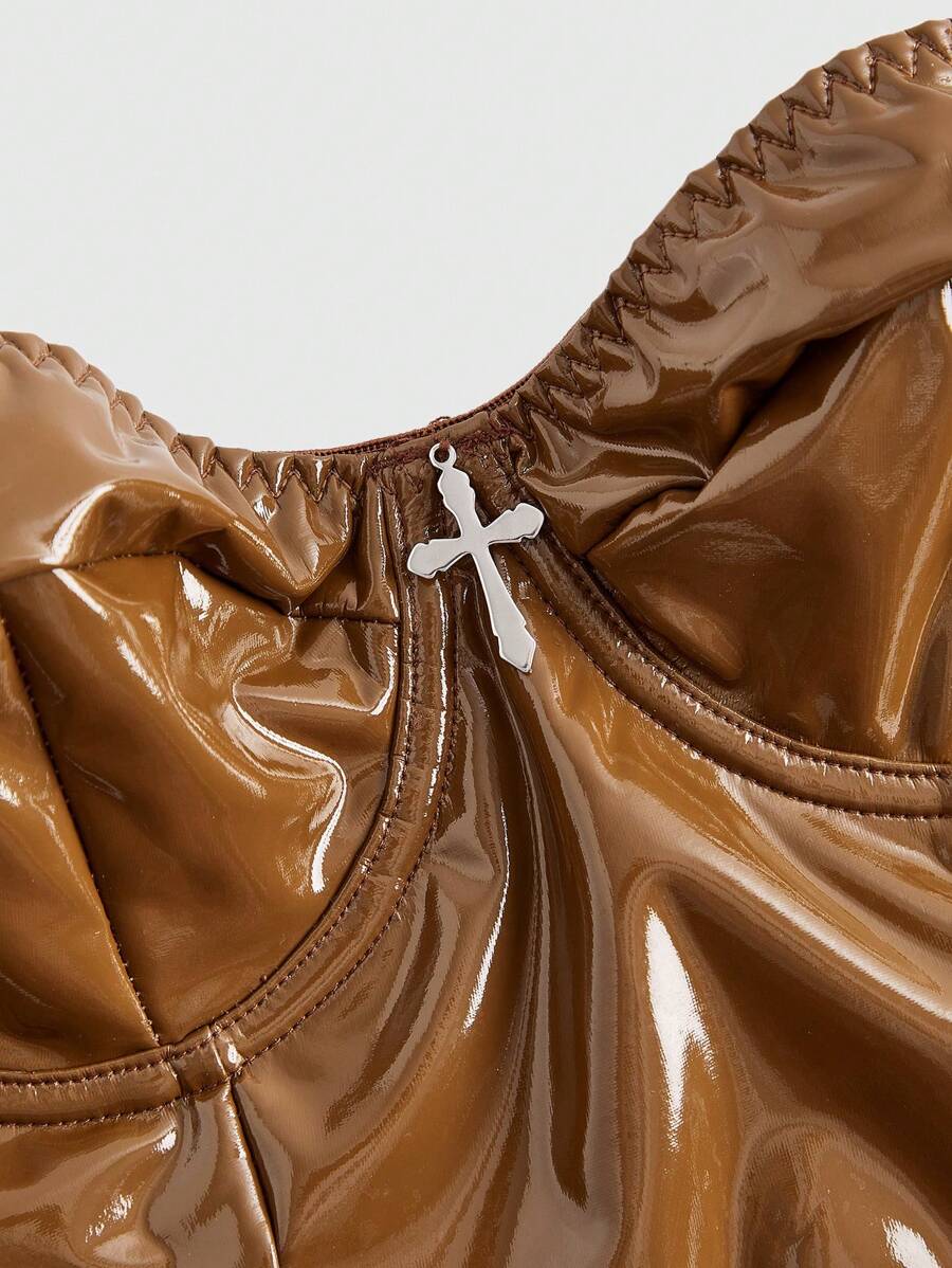 Grunge Punk Women's Brown Leather Bandeau Top Decorated With Cross Pendant