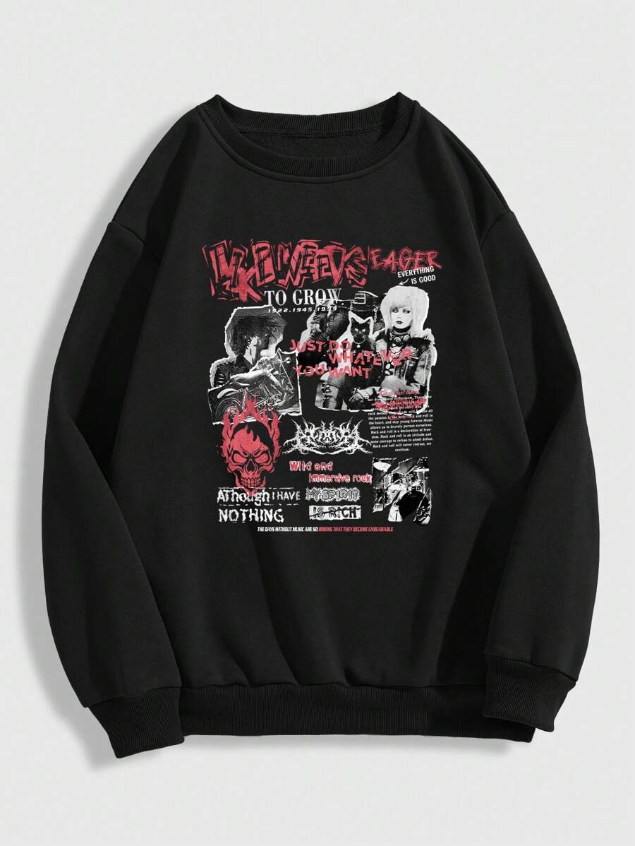 Grunge Punk Women's Character Print Fleece Sweatshirt