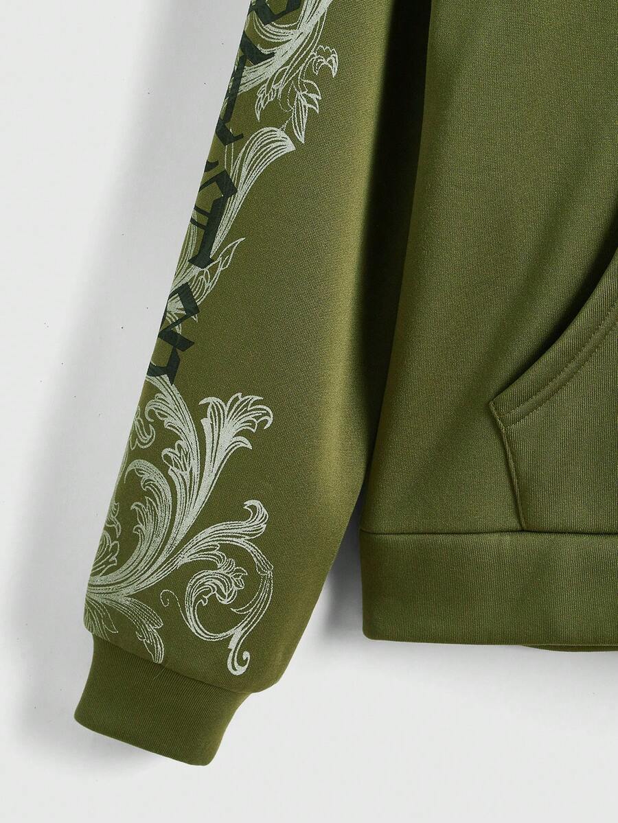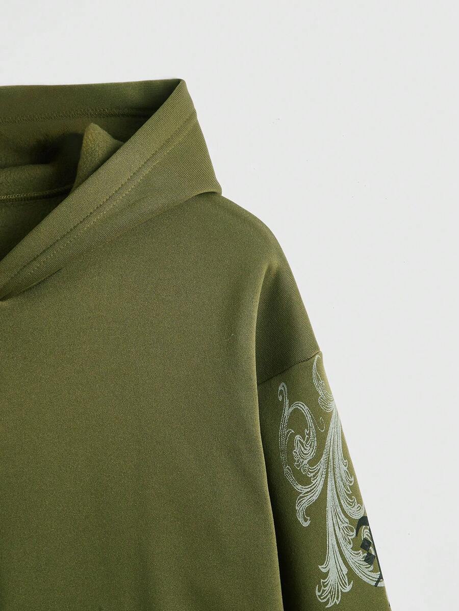 Grunge Punk Women's Hooded Sweatshirt With Wing And Floral Print