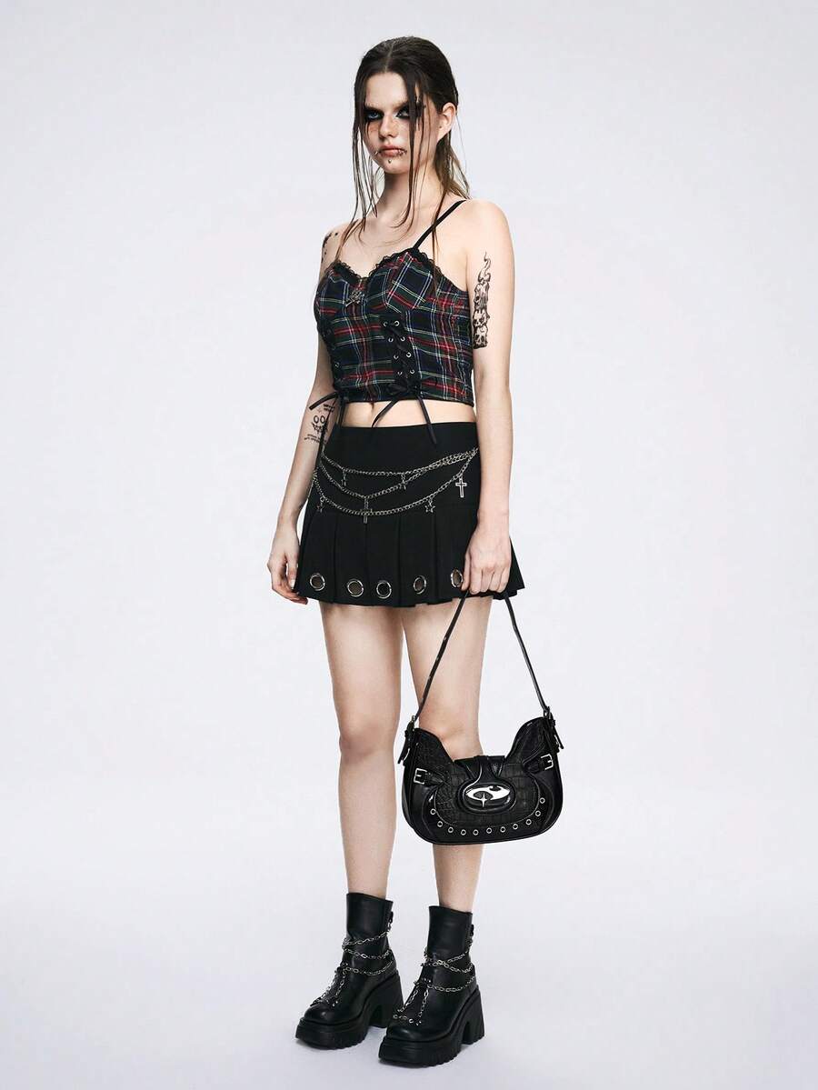 Grunge Punk Women's Large Capacity Black Shoulder Bag With Circle Decor