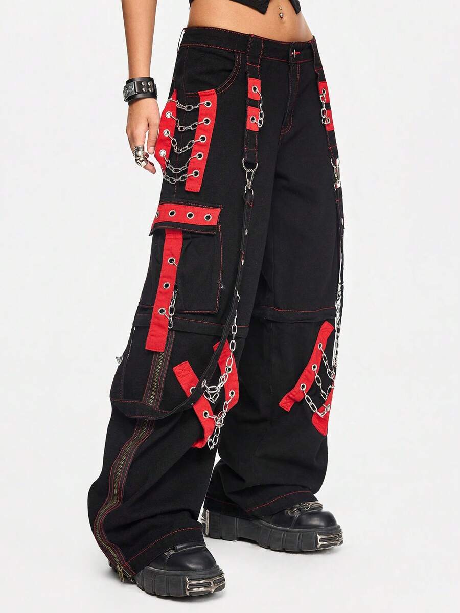 Grunge Punk Women's PUNK Style Patchwork Grommet Denim Jeans