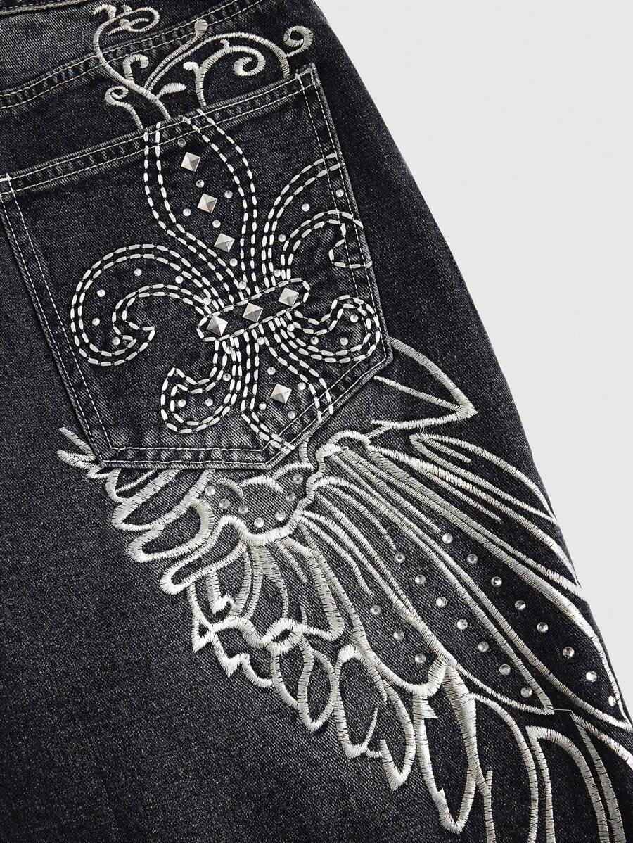 Grunge Punk Women's Punk Street Style Tokyo Street Fashion Culture Oversized Embroidered & Rhinestone Decorated Denim Shorts