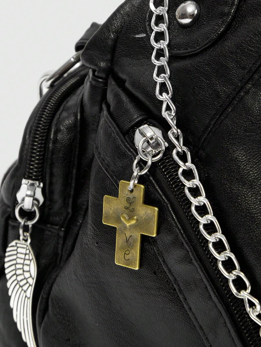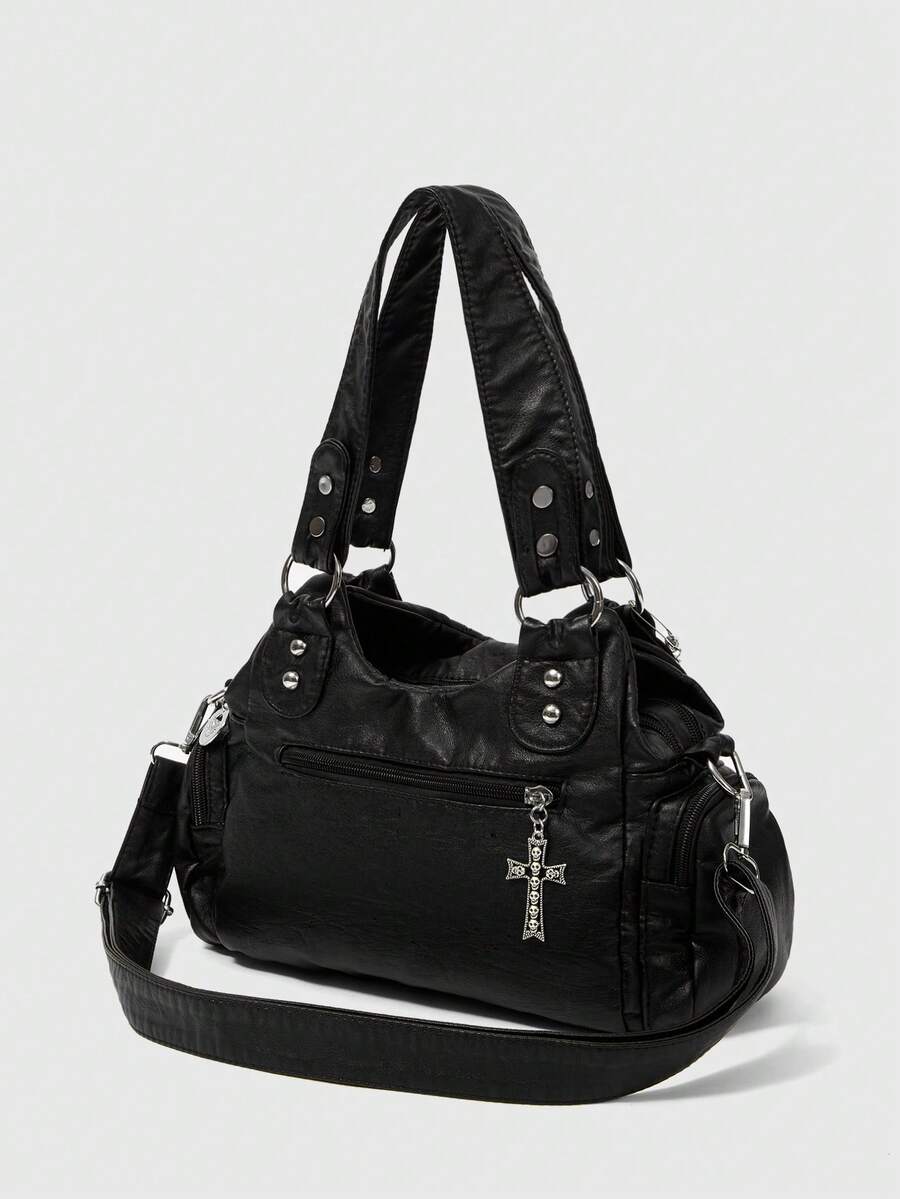 Grunge Punk Women's Punk Style Skull Rose Black Shoulder Bag