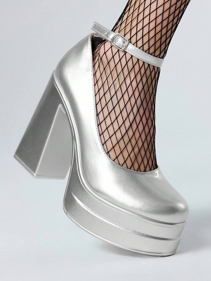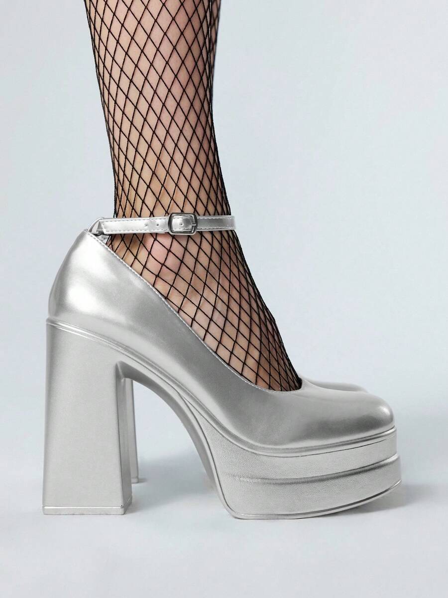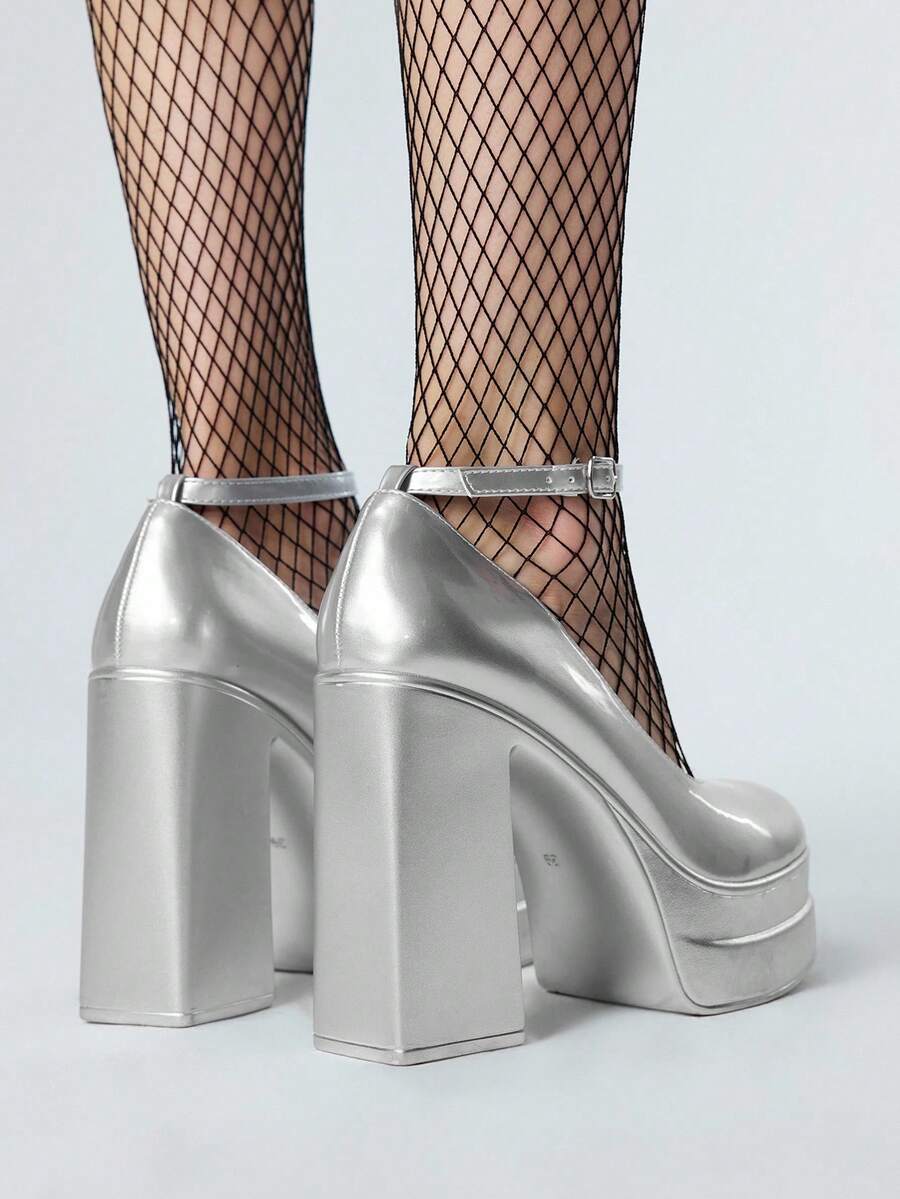 Grunge Punk Women's Silver High Heels, Suitable For Casual, Punk, And Campus Wear